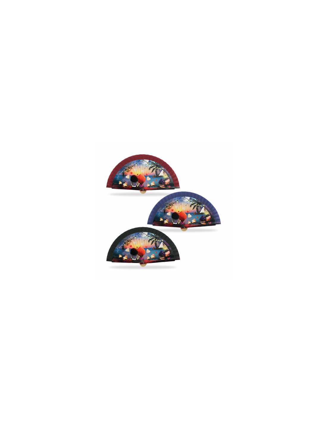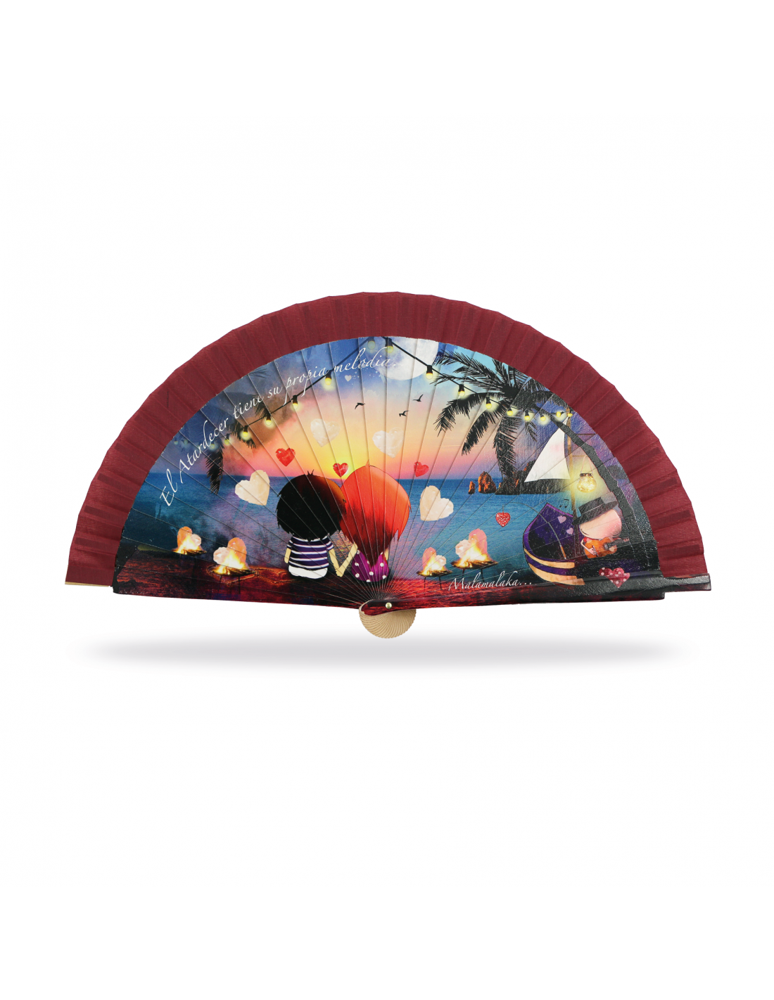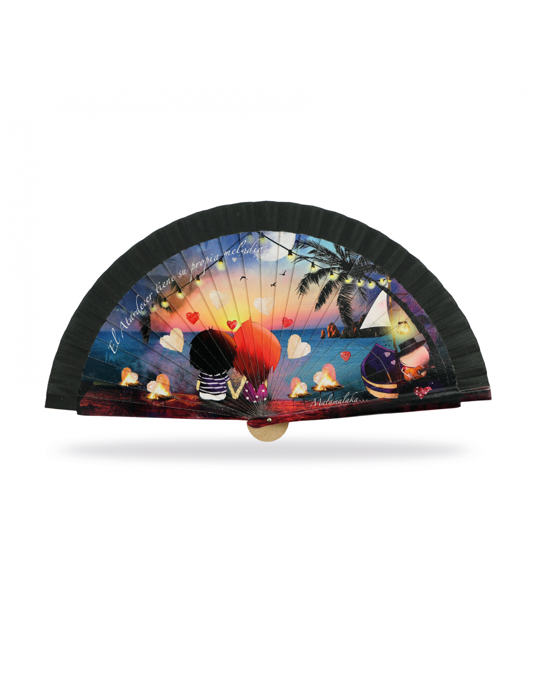 Este abanico ilustrado por Malamalaka tiene un diseño único inspirado en el atardecer.