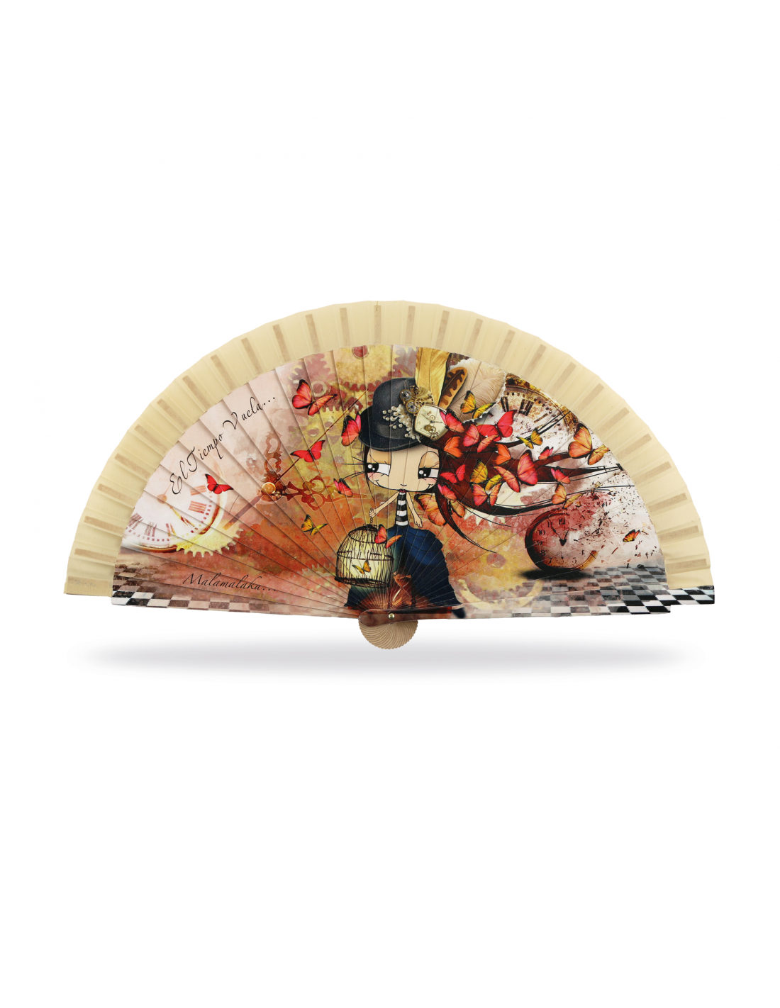 ABANICO MALAMALAKA DE MADERA NATURAL "TIEMPO" 23 CM