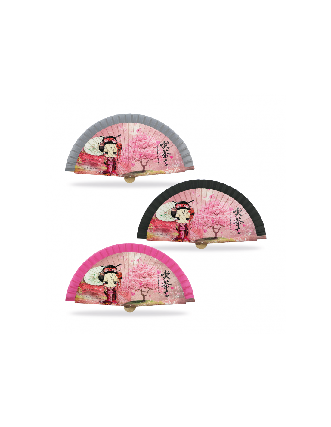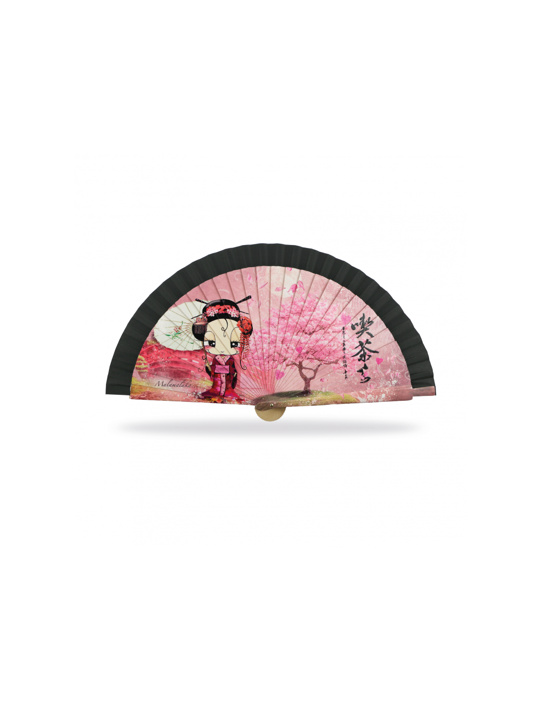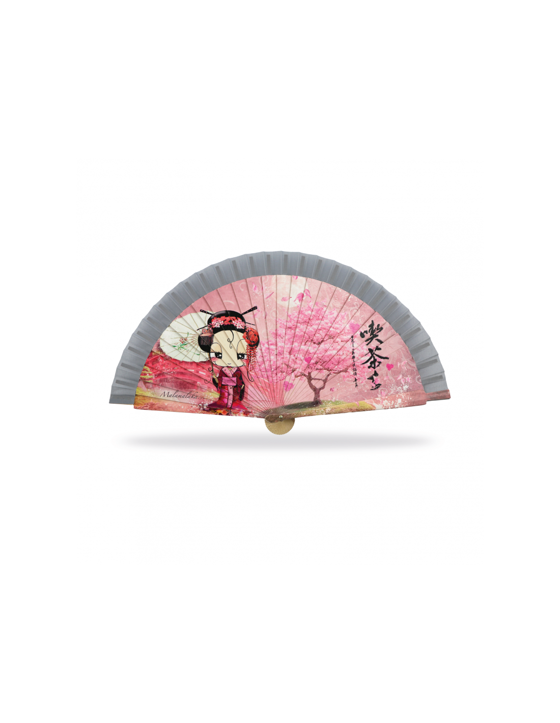 Este abanico ilustrado por Malamalaka tiene un diseño único inspirado en una geisha.