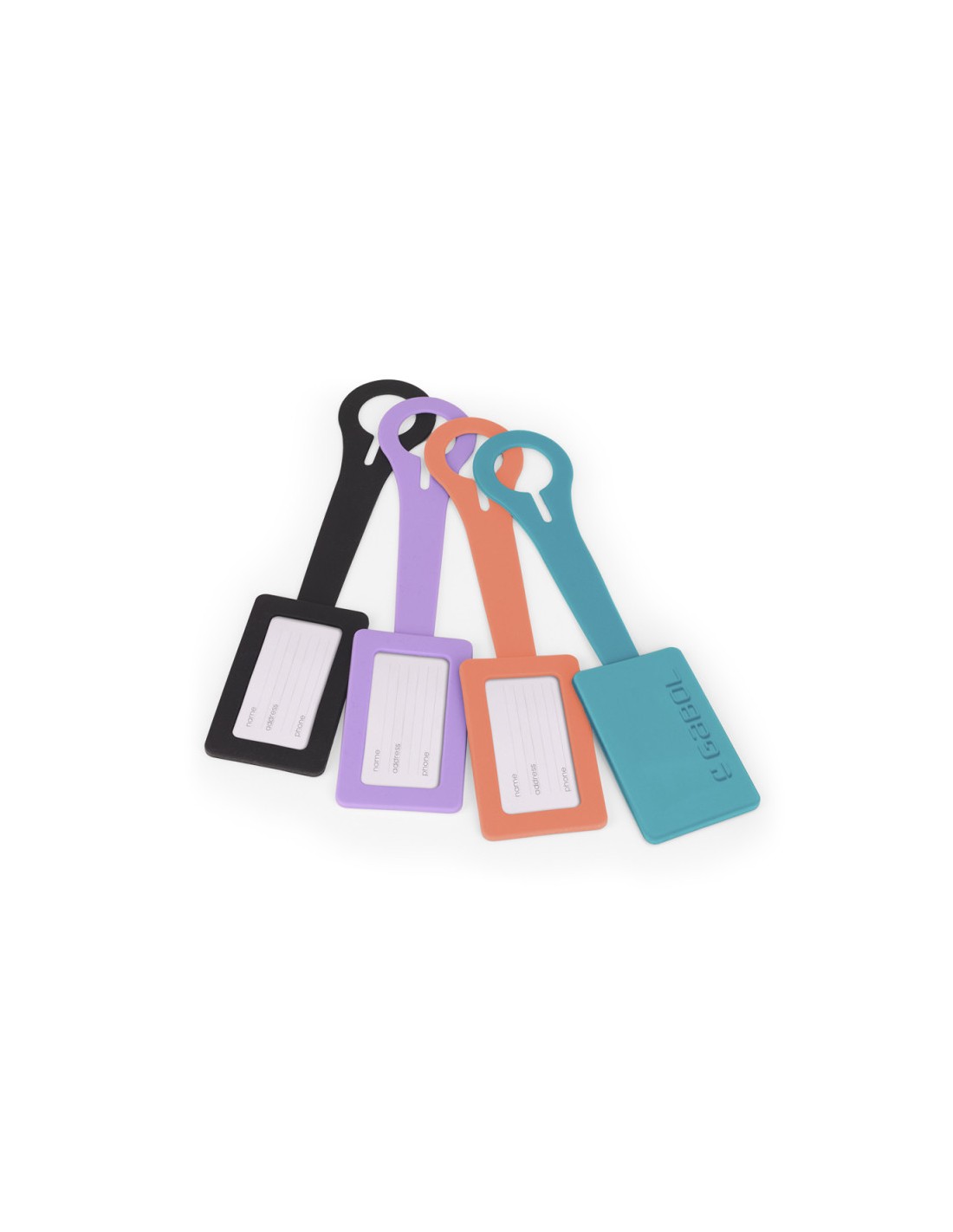 Incluyen espacio para tus datos personales y una cinta ajustable para colocarlos fácilmente en cualquier tipo de maleta o mochila.