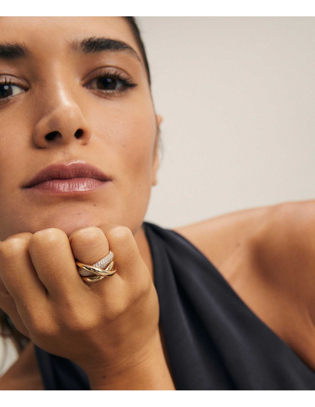 Anillo Luz Vidal & Vidal colección Straps chapado oro 18kt tiras entrelazadas con circonitas. Talla 14-18.