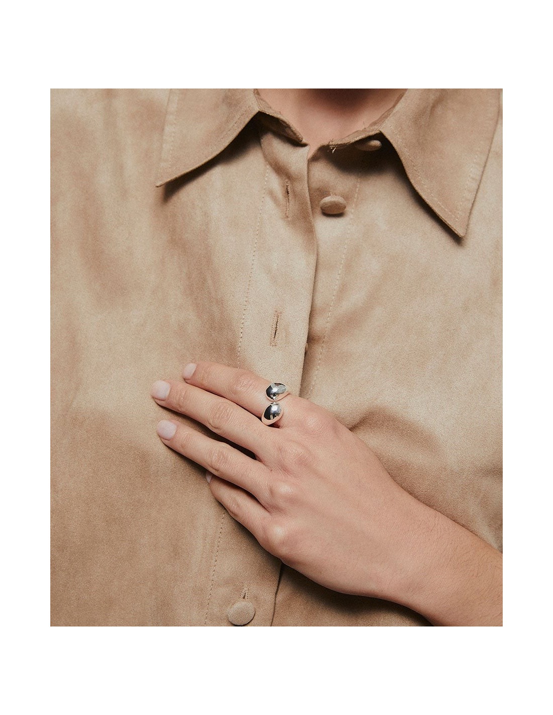 El anillo Big Drop de la colección Suave. Bañado en plata de ley 925, es ajustable.