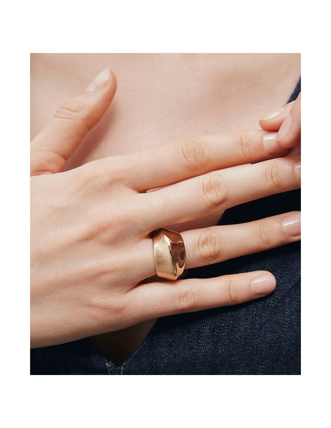 Anillo volumen Dual bañado con una gruesa capa de oro macizo de 18kt, lo que garantiza una mayor durabilidad.