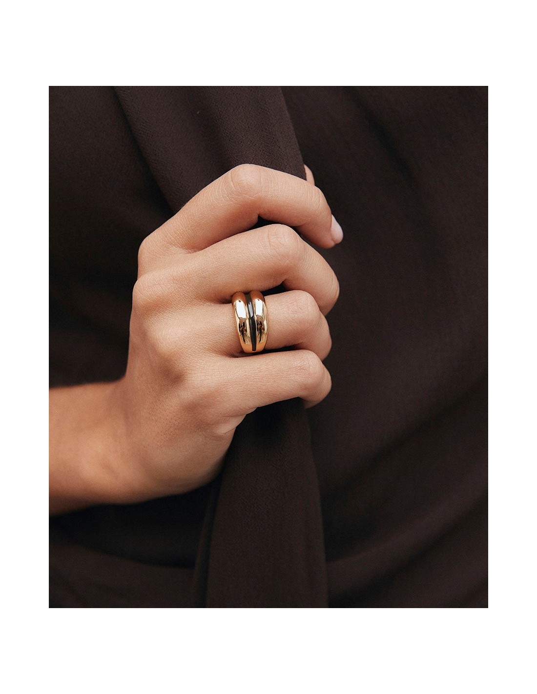 Anillo ancho Horizonte bañado con una gruesa capa de oro macizo de 18kt, lo que garantiza una mayor durabilidad.