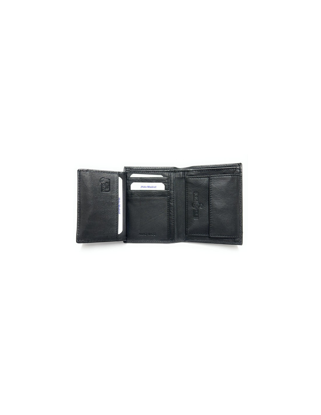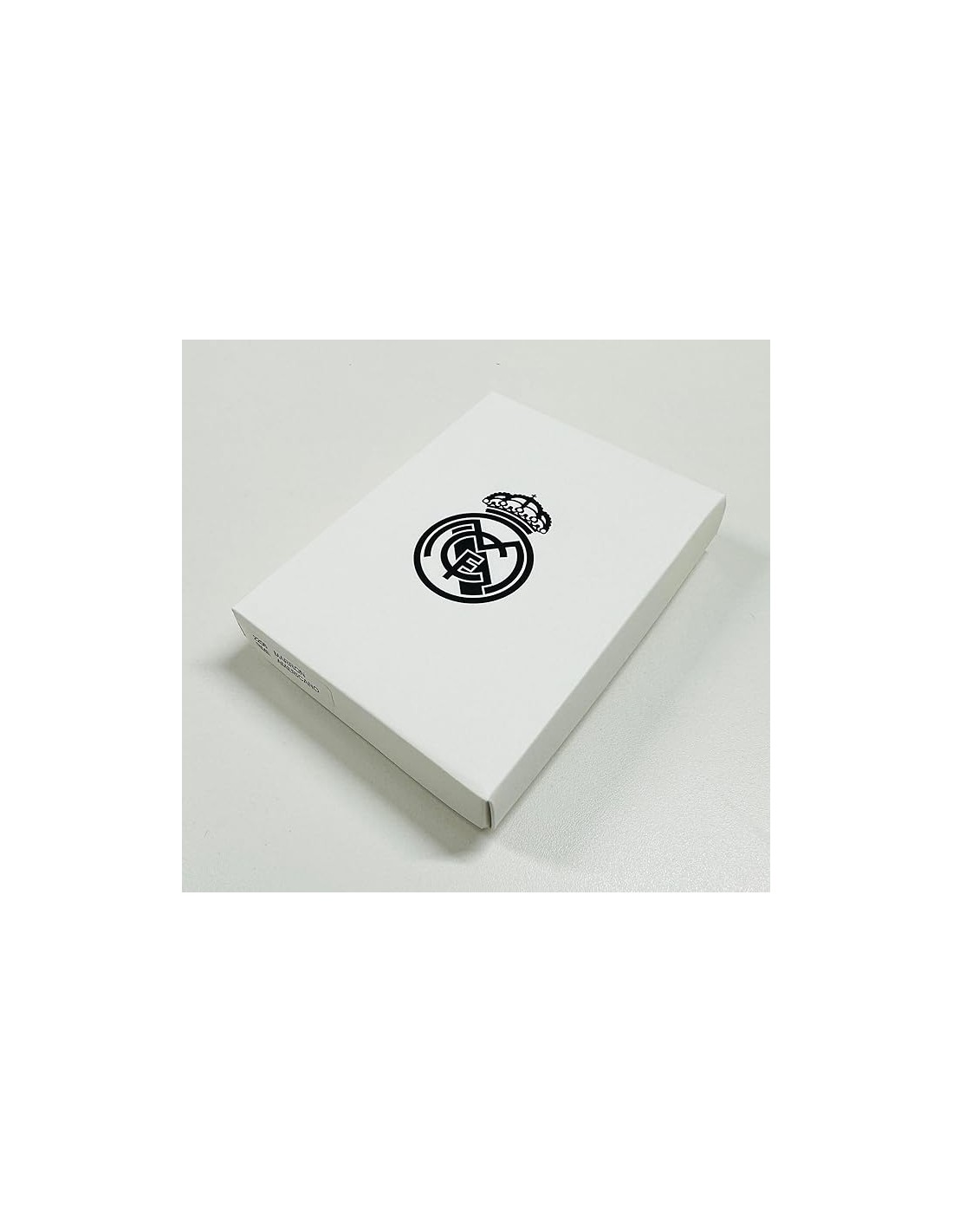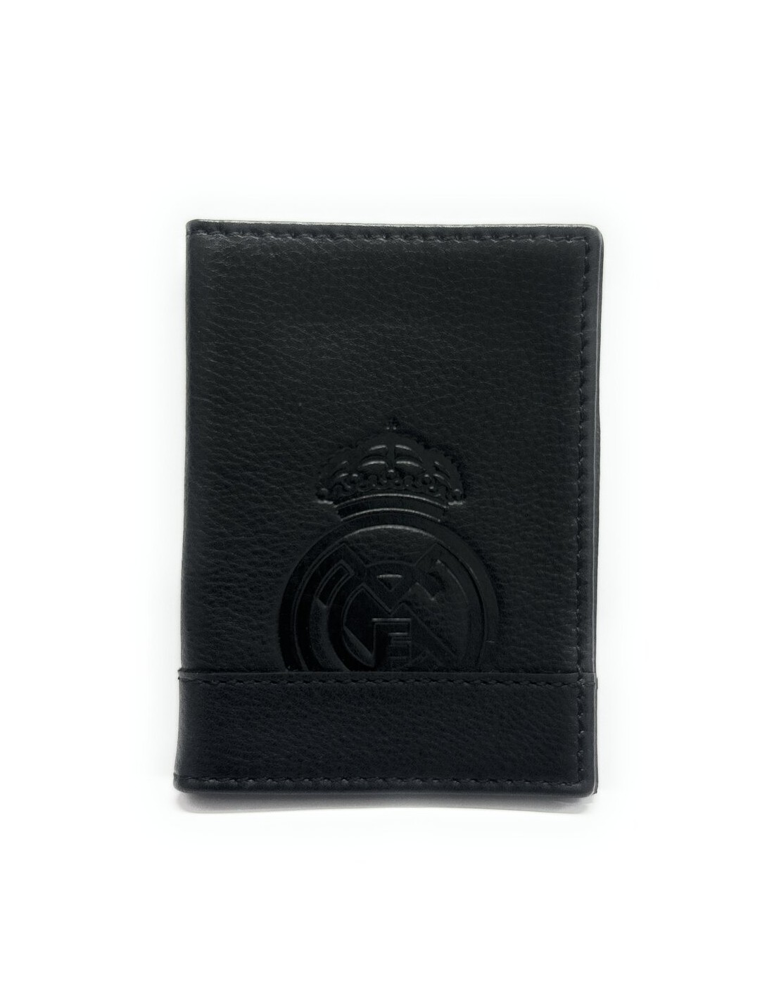 Cartera Oficial del Real Madrid hecha a mano de piel grabada con el escudo del Real Madrid extra suave en forma vertical.