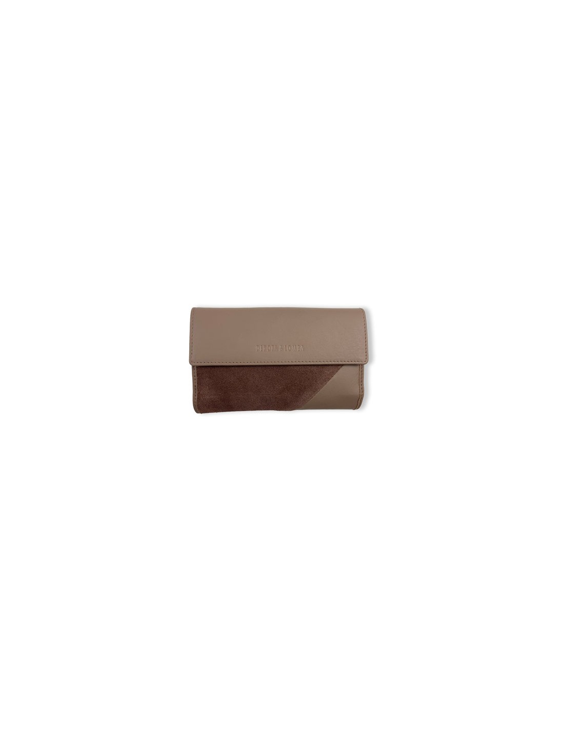 Monedero exterior solapa con corchete y apartado con cremallera. Tarjetero con cierre con presilla.