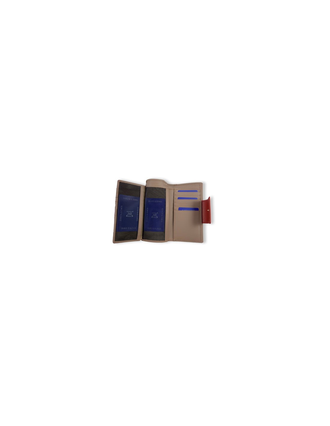 Cartera billetera mediana de piel de la marca Devota & Lomba. Cartera con monedero con cierre solapa con broche y en su interior un apartado con cremallera. Otro apartado con cierre de solapilla con broche con varios apartados para tarjetas, varios con rejilla ideal para fotos y DNI y dos apartado para billetes.