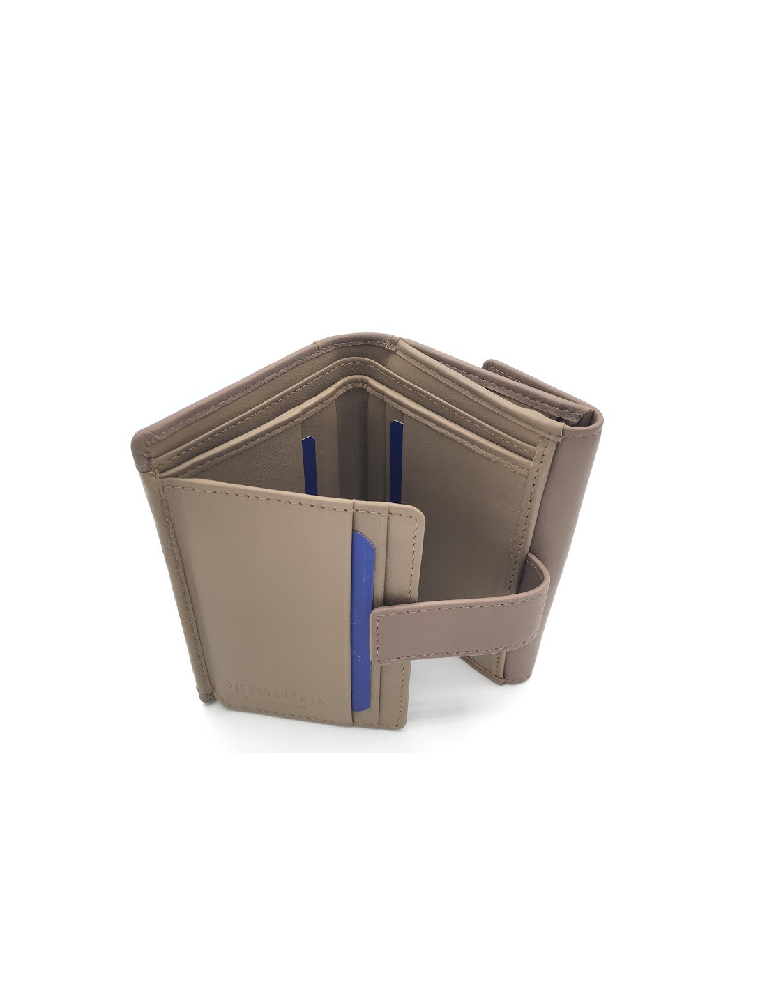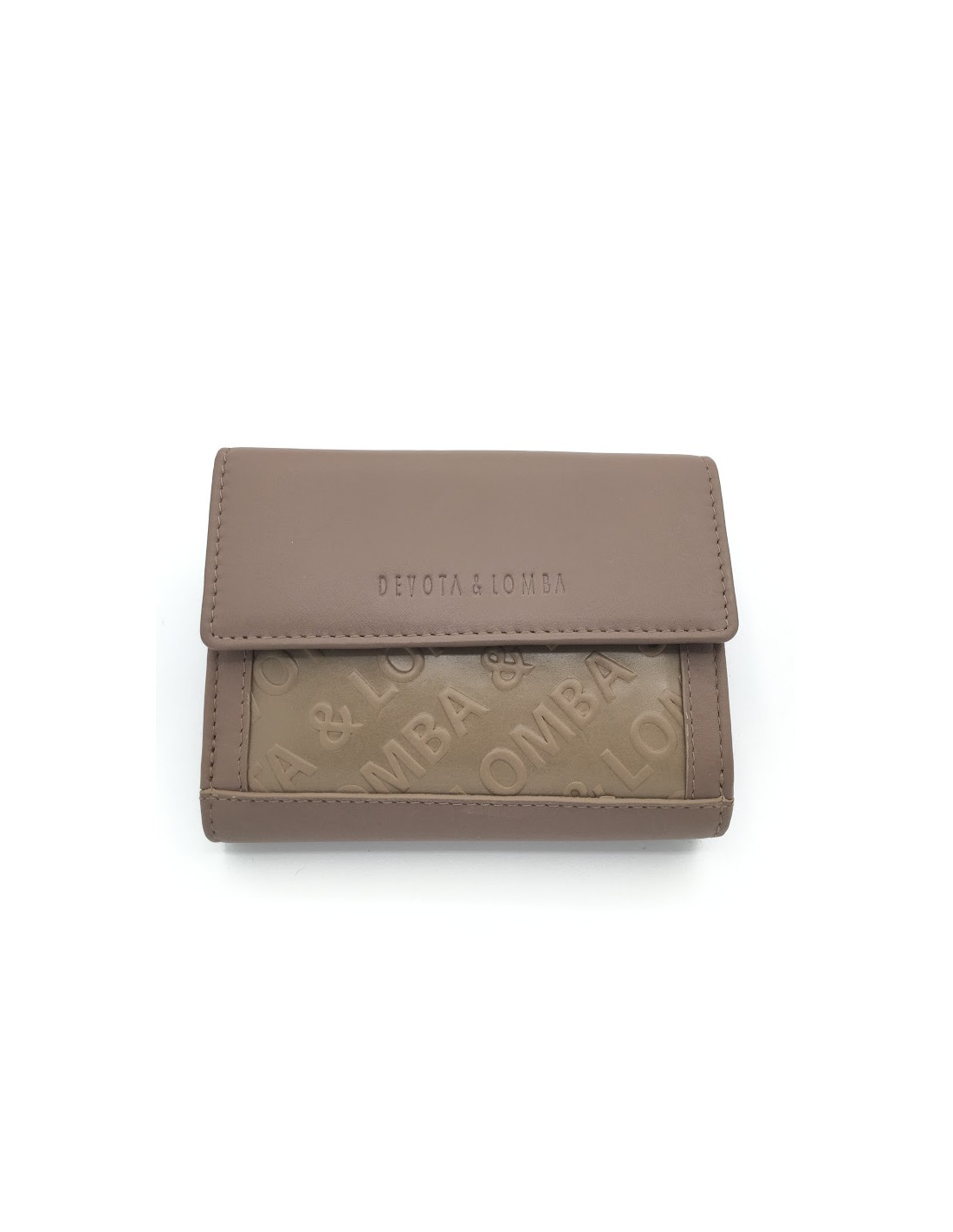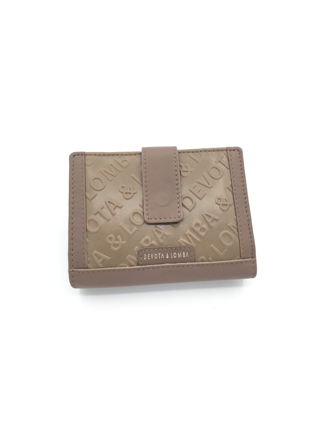 Cartera billetera mediana de piel de la marca Devota & Lomba. Cartera con monedero con cierre solapa con broche y en su interior un apartado con cremallera. Otro apartado con cierre de solapilla con broche con varios apartados para tarjetas, uno con rejilla ideal para fotos y DNI y dos apartado para billetes.