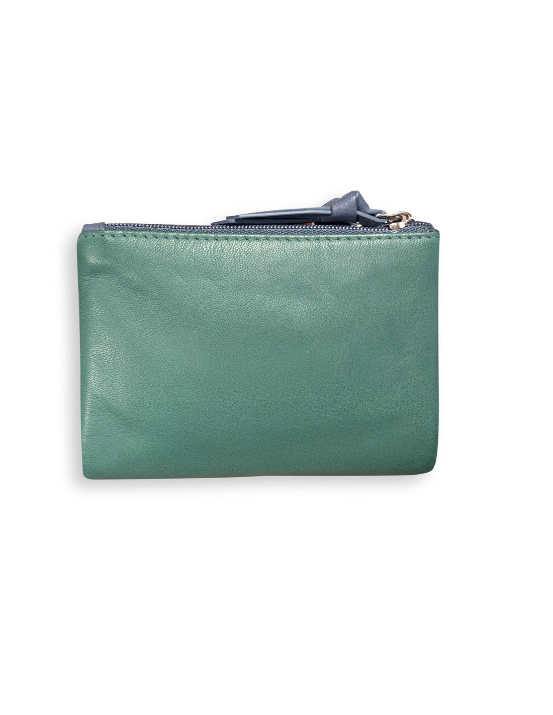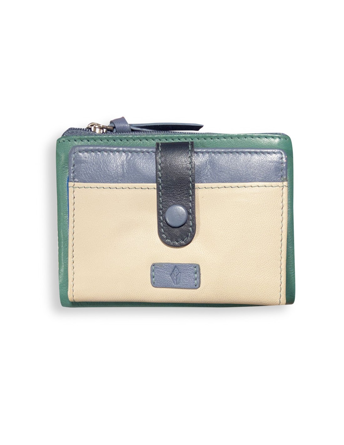 Cartera mujer piel Menta color turquesa o beige, con tarjetero 7 ranuras, billetero y doble monedero exterior con cierre de cremallera.