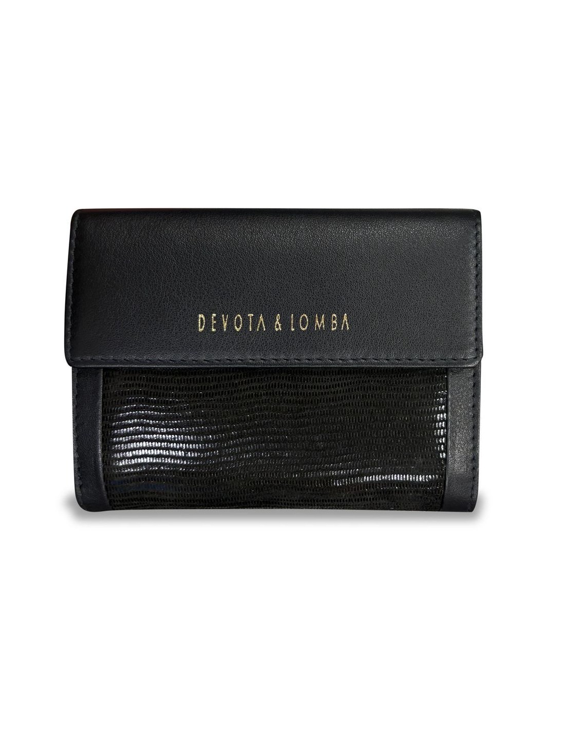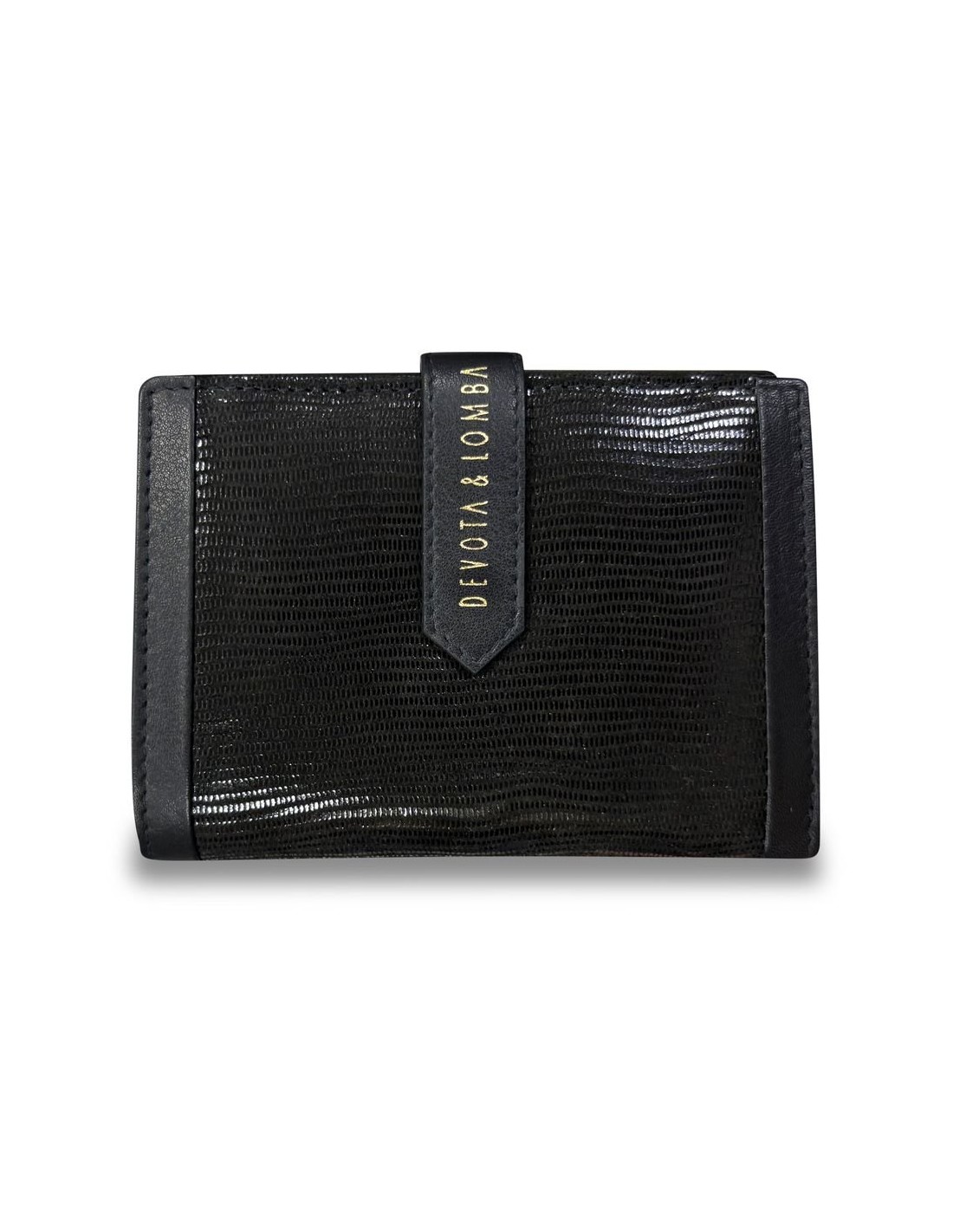 Cartera billetera mediana de piel de la marca Devota & Lomba. Cartera con monedero con cierre solapa con broche. Otro apartado con cierre de solapilla con broche con varios apartados para tarjetas, uno con rejilla ideal para fotos o DNI y dos apartado para billetes.