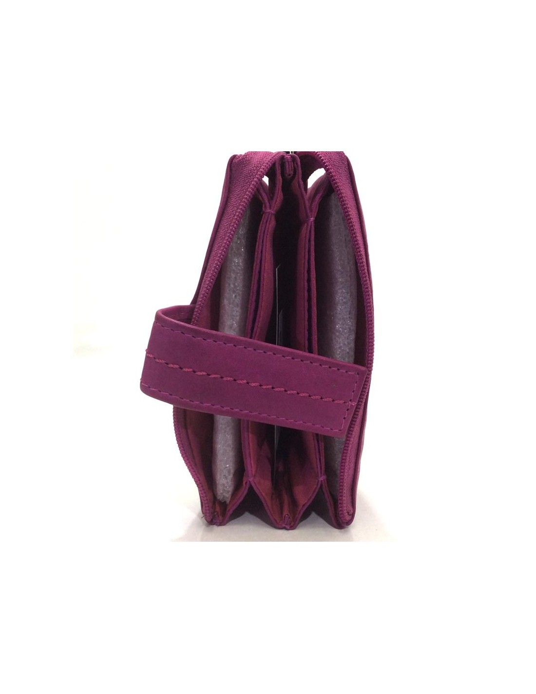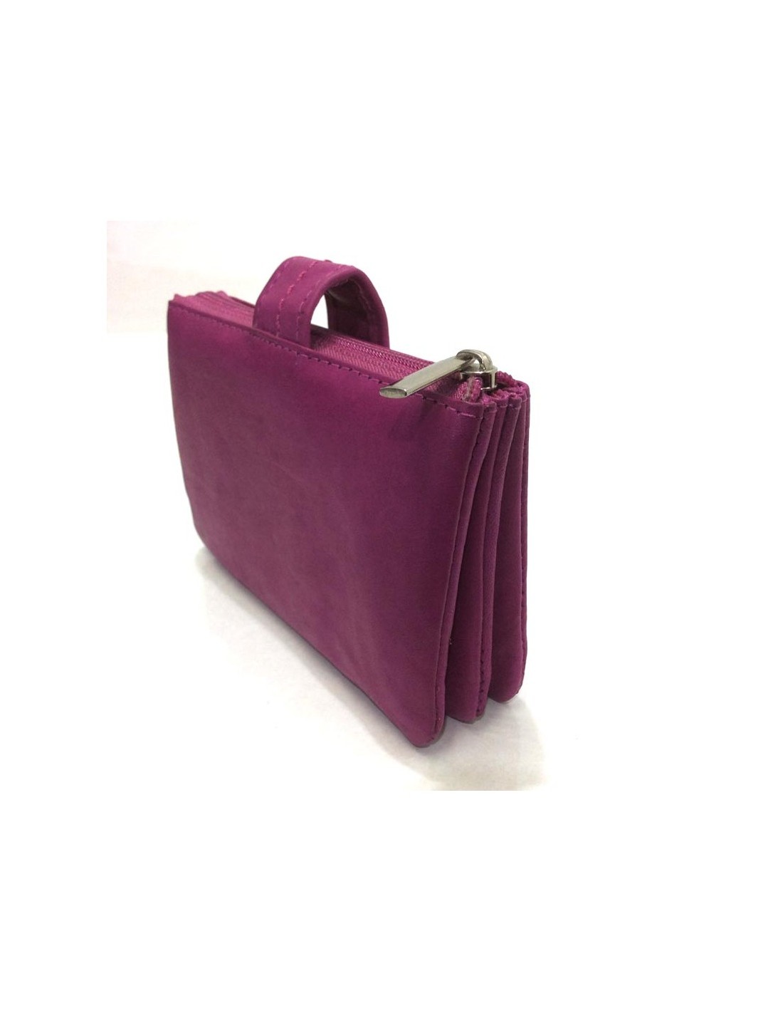 Monedero Mujer de Piel con tres apartados, Charro en color Fucsia