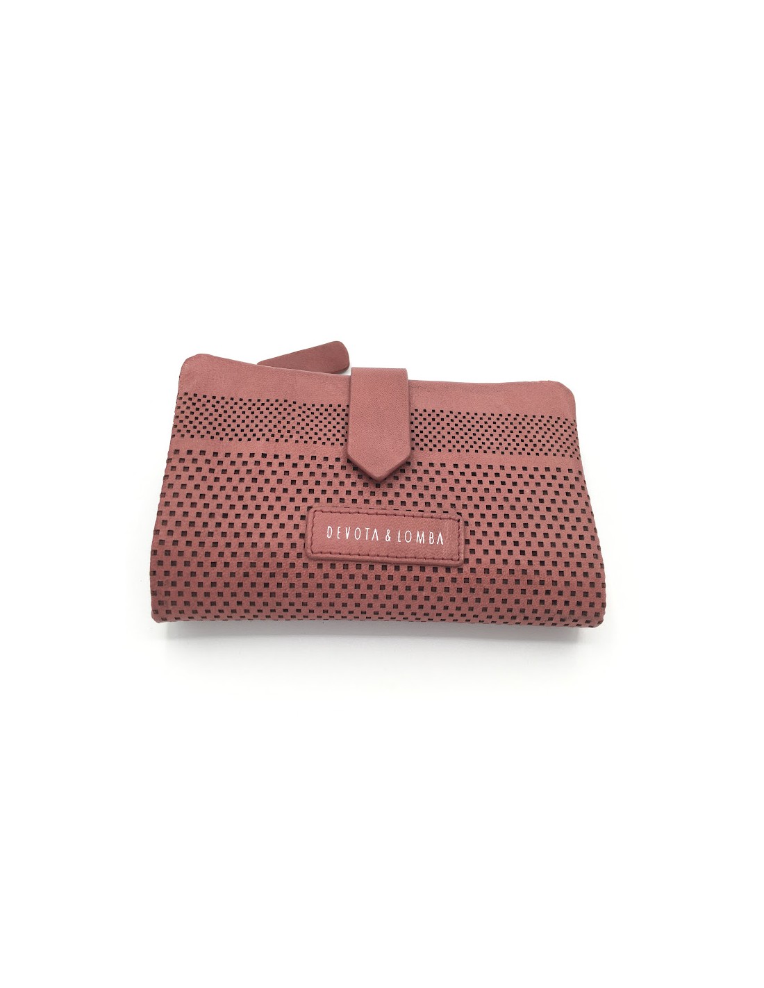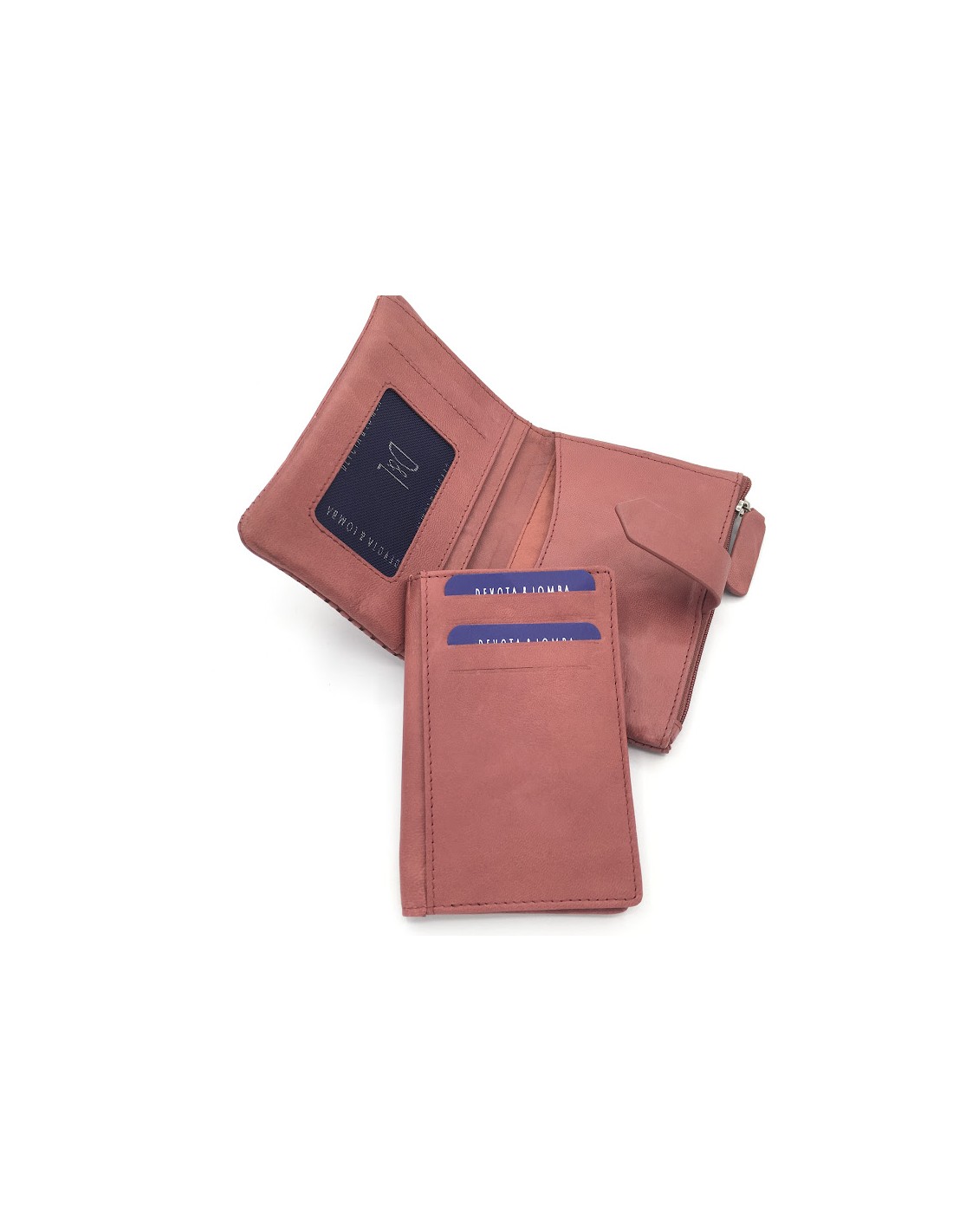 Billetero, tarjetero, monedero de piel vacuno color rosa granate, picado calado. monedero exterior con cierre de cremallera, 20 departamentos para tarjetas con tarjetero extraíble y doble billetero.