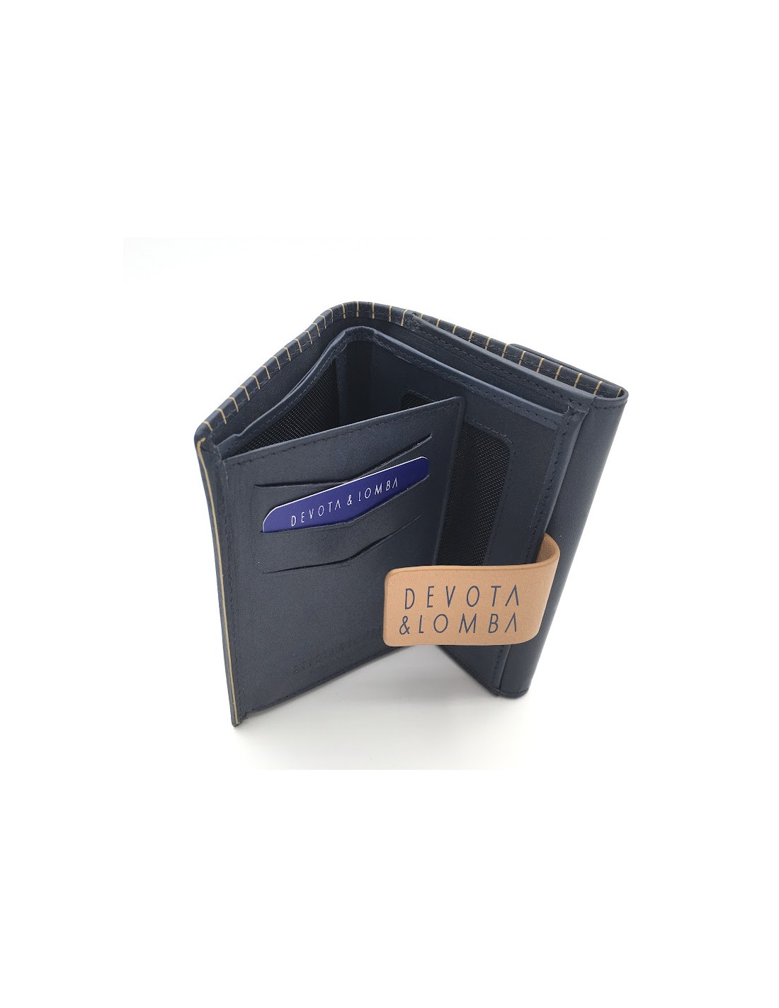 Cartera con monedero con cierre solapa con broche y en su interior un apartado con cremallera. Otro apartado con cierre de solapilla con broche con varios apartados para tarjetas, varios con rejilla ideal para fotos y DNI y dos apartado para billetes.