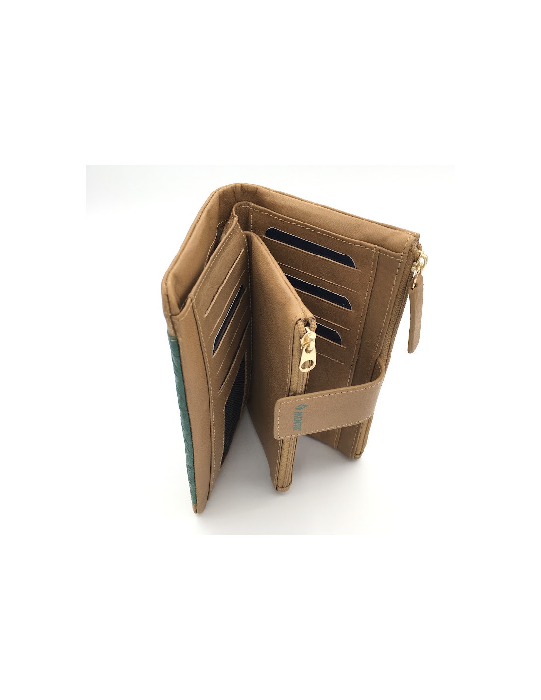 BILLETERO PIEL MENTA PEQ. BEIGE/VERDE VICTORIA