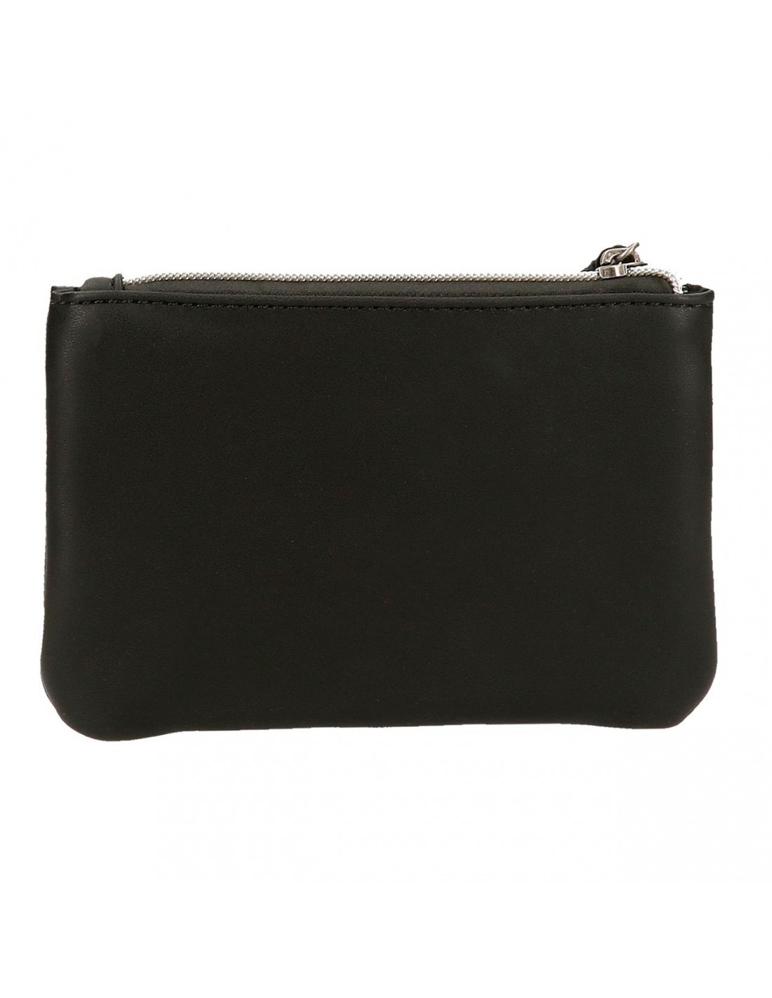 Doble compartimento con interior forrado: principal más grande con espacio para tarjetero con tres ranuras y segundo con espacio suficiente para guardar monedas, llaves, tickets y pequeños objetos.