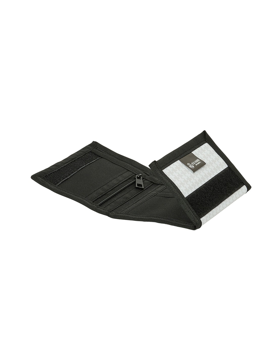 Interior con varios departamentos, habilitados para billetera, tarjetero, documentos o fotos, con uno especial con cierre de cremallera para monedero