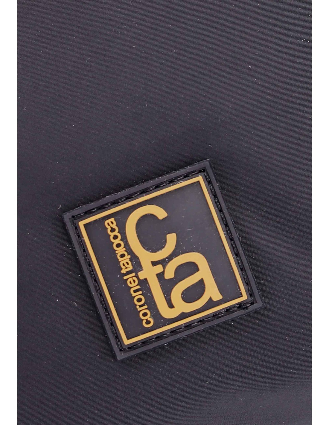Lleva cierre de cremallera con tirador metálico con logo. Tiene un bolsillo frontal con cremallera y cordino en el tirador.