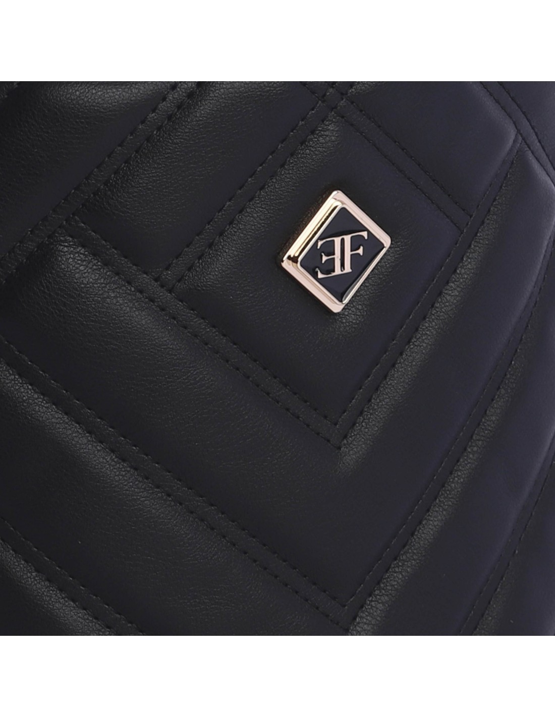 Asa de hombro de cuero sintético negro y un asa extraíble de bandolera de cuero negro. Pensada para llevar cómodamente el bolso a cualquier parte.