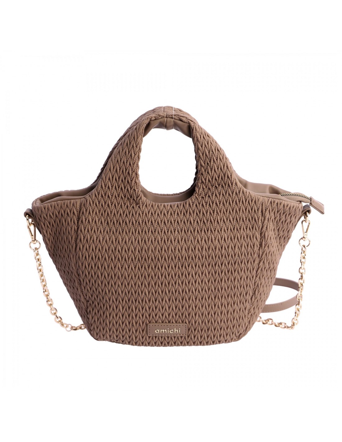 Bolso de mano y bandolera para mujer Amichi Erema de nylon efecto zig zag en relieve y logo frontal.