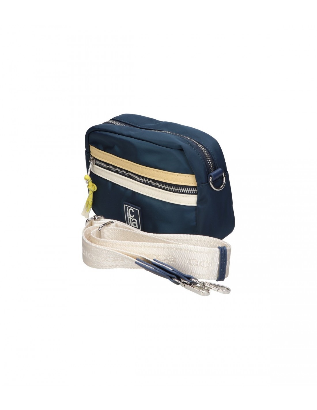 Bolso bandolera color azul marino. Confeccionado en polipiel y textil de alta calidad en su exterior, garantiza durabilidad y resistencia.