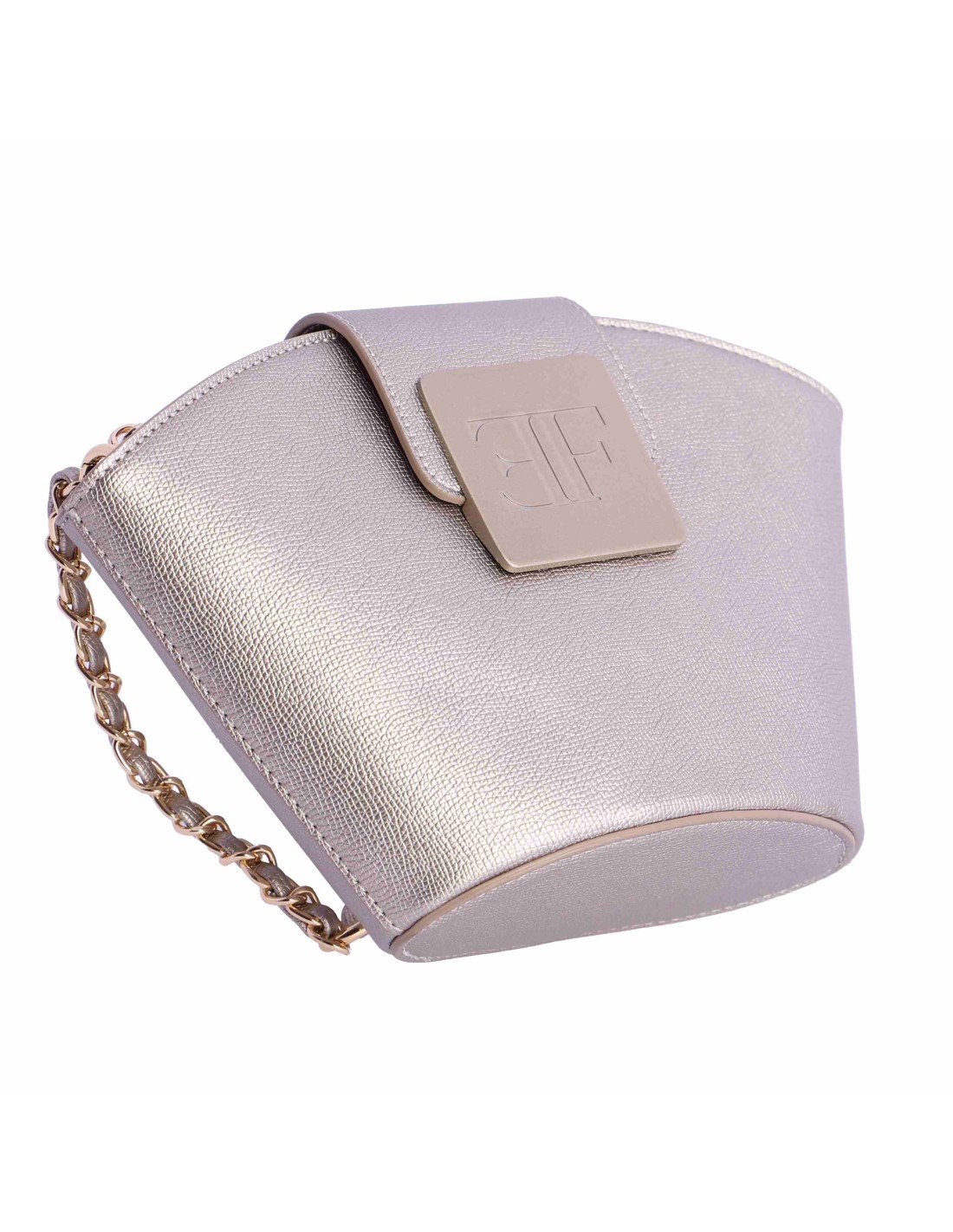 Bolso de hombro para mujer EFERRI Gigi de piel sintética, con un asa de cuero sintético en color oro.