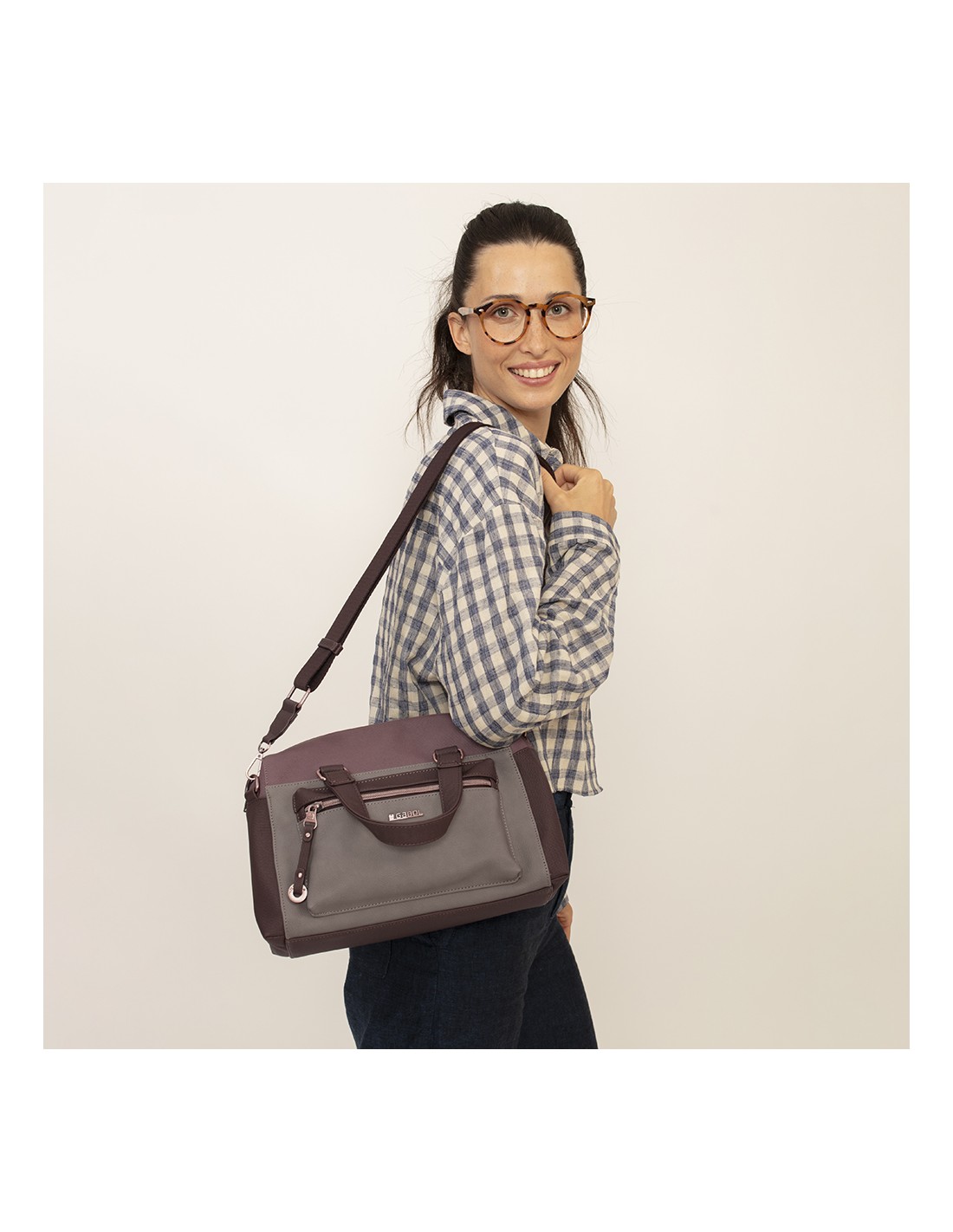 Bolso de mano de la colección DARA, con bandolera para poder colgarlo. Con un diseño más clásico y un color de temporada.