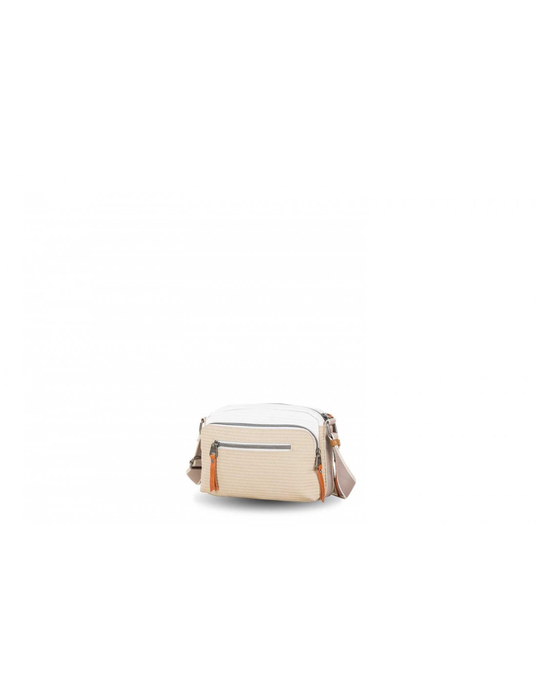Bolso bandolera ajustable con tres compartimentos amplios.