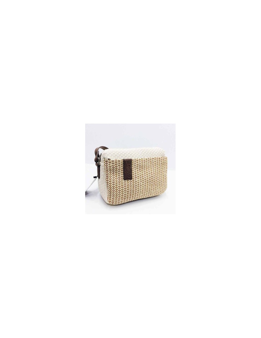 La Bandolera Torrens Zinnia está confeccionada en rafia sintética con remates en polipiel, ofreciendo un diseño elegante.
