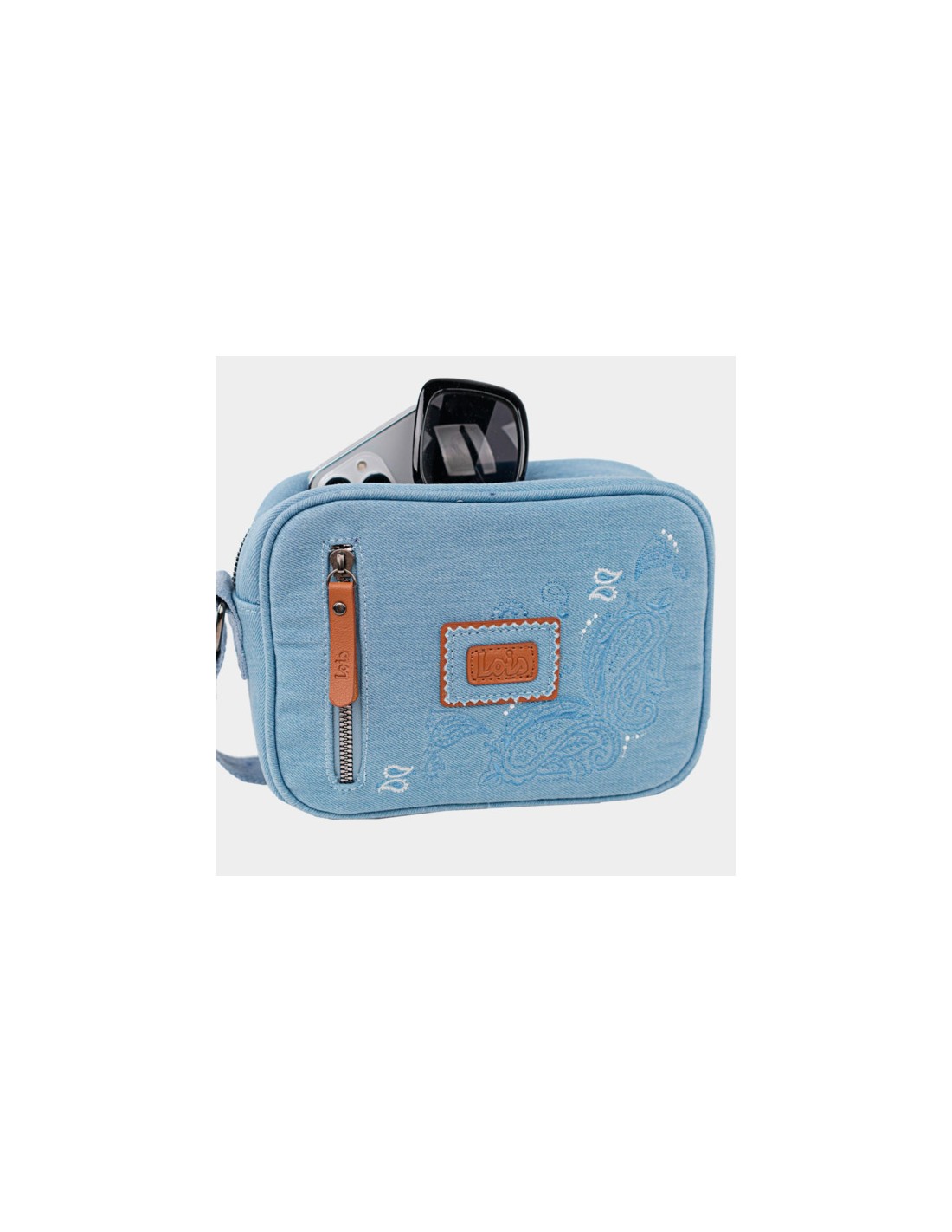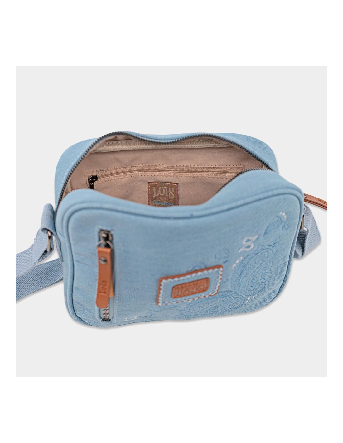 Bolso con bandolera regulable, compartimento interior amplio. Bolsillo trasero y delantero con cremallera.