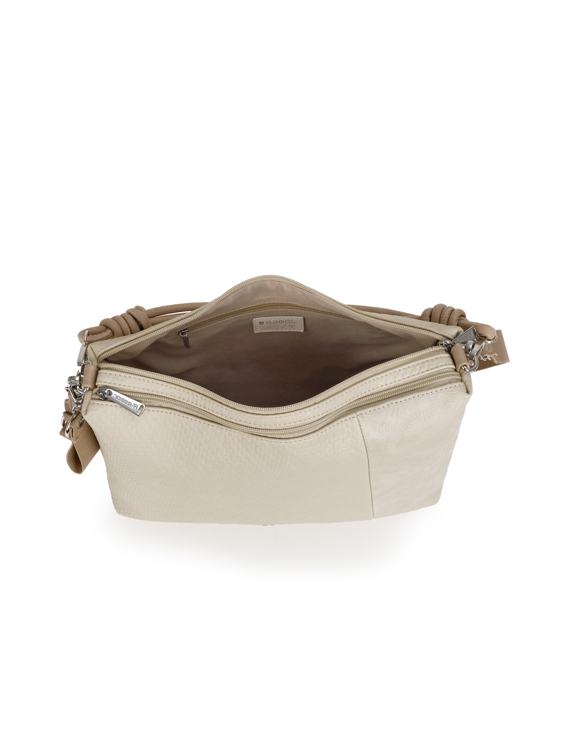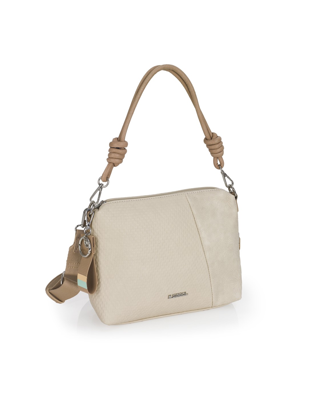 Bolso de piel sintética, beige. Fabricado con materiales libres de plásticos PVC. Medidas: 24x19x9 cm.