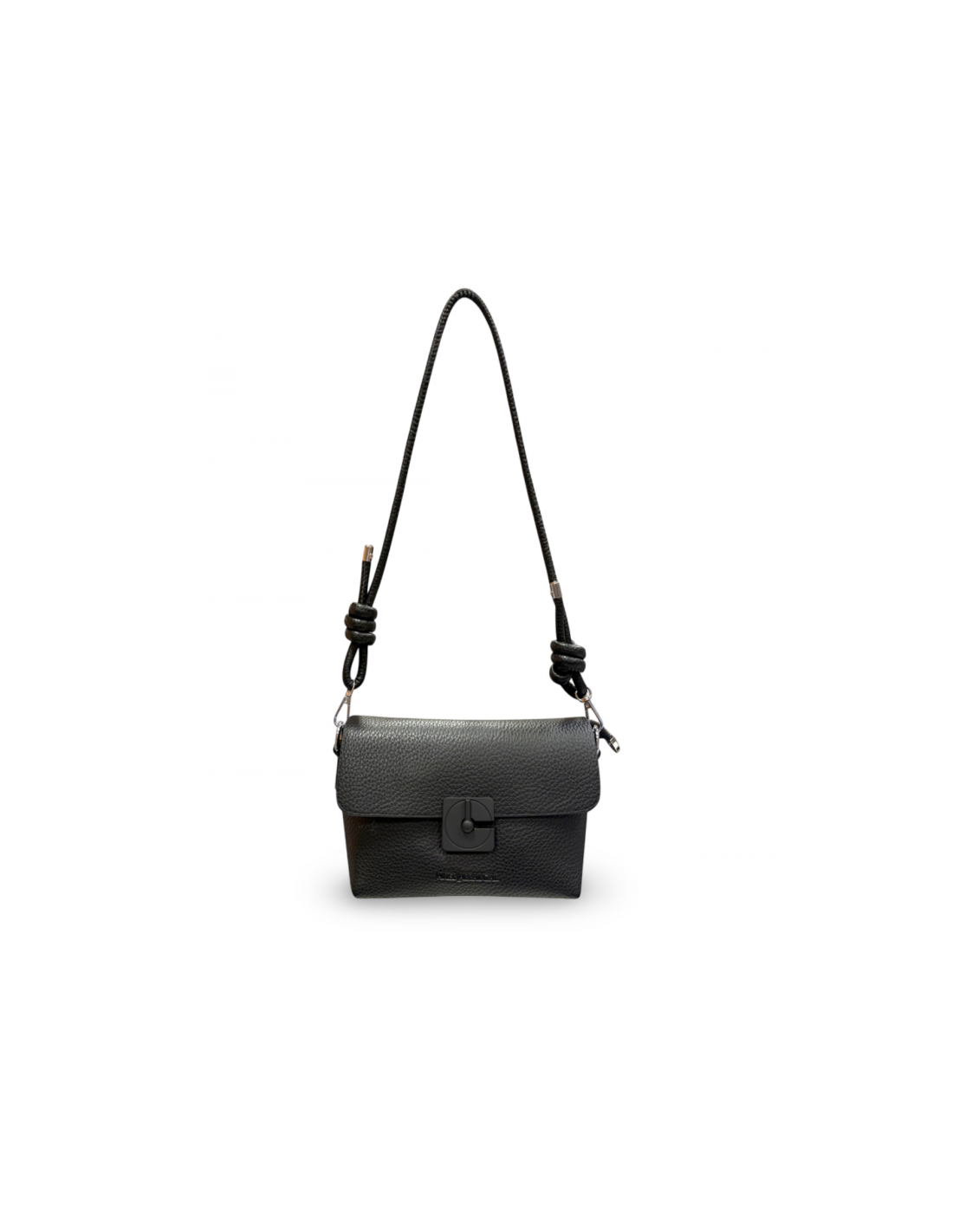 Bolso con doble correa extraíbles una más corta de hombro cordón piel sintética y bandolera regulable. con solapa y cierre metálico al tono.