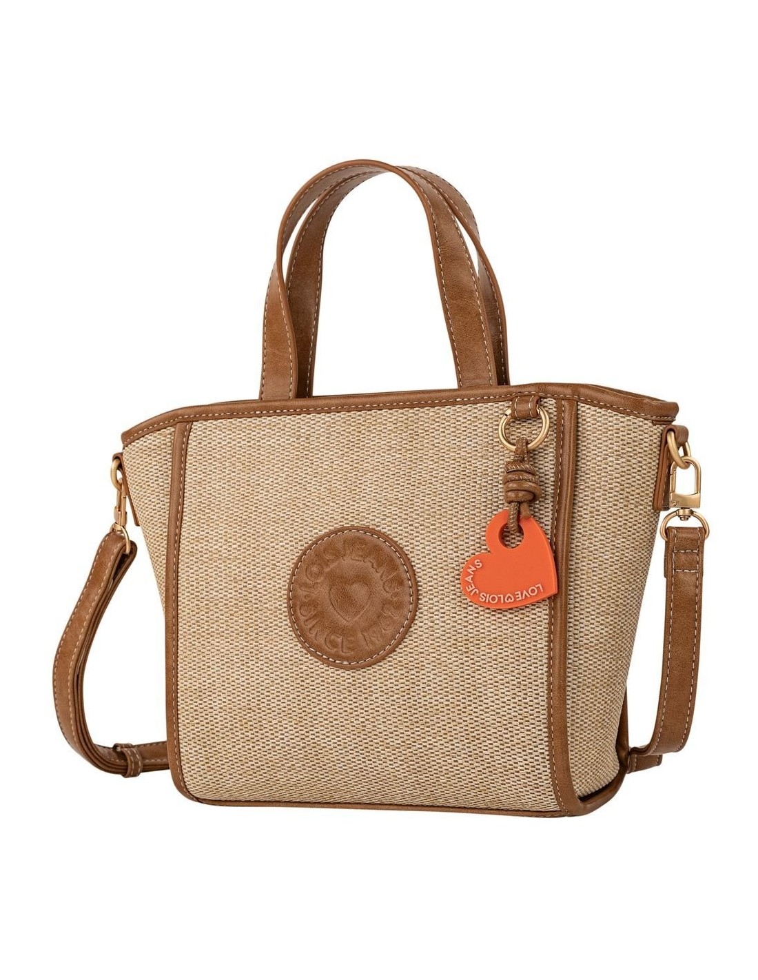 Bolso con do asas de mano y bandolera regulable para llevarlo cruzado.