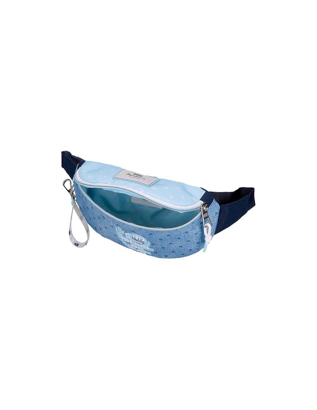 Riñonera de 34 cm x 13 cm x 7 cm fabricada en poliéster.