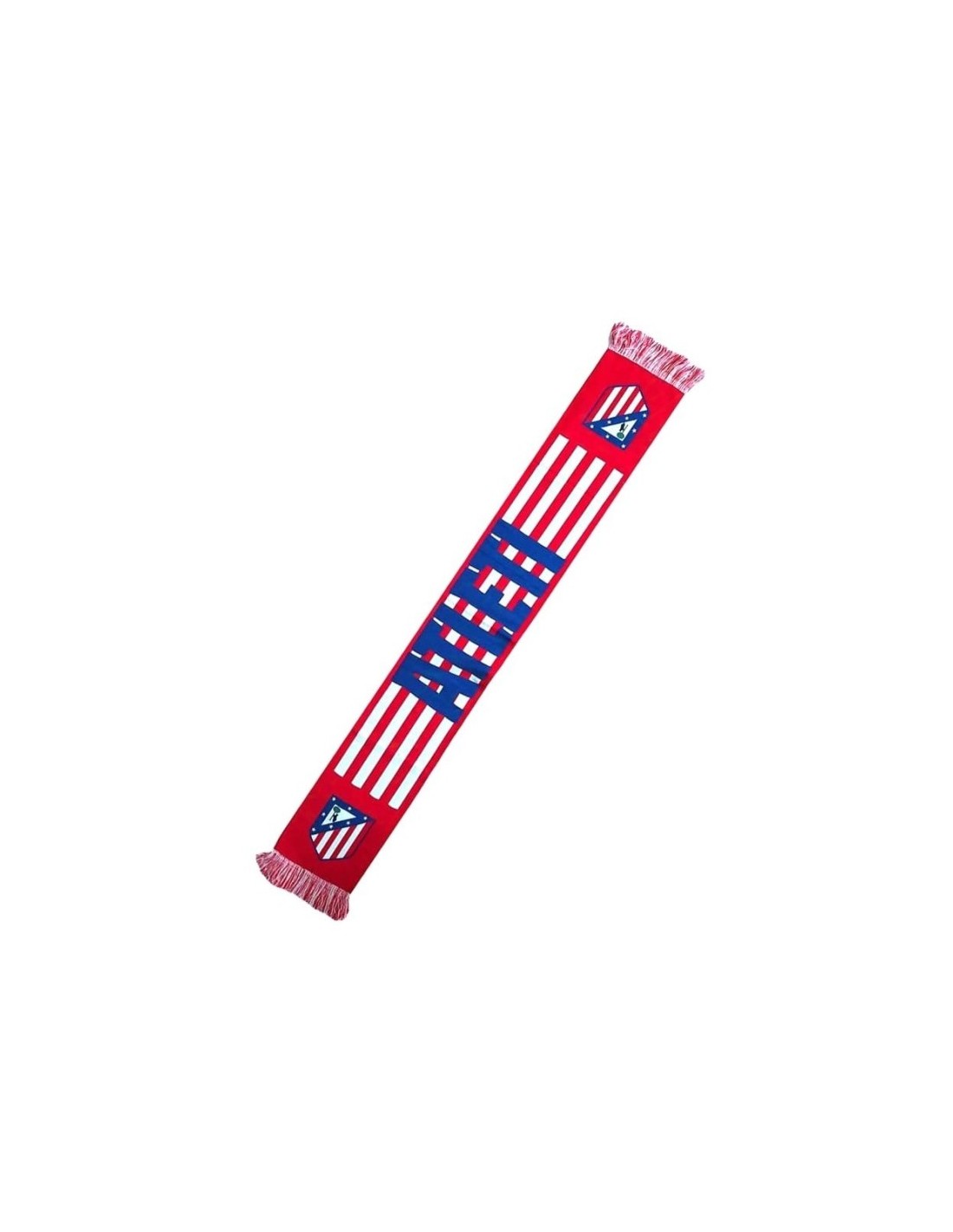 Franjas rojiblancas en toda su longitud, con leyenda Atleti en gran formato en la parte central, y escudos Atlético de Madrid en ambos extremos.
