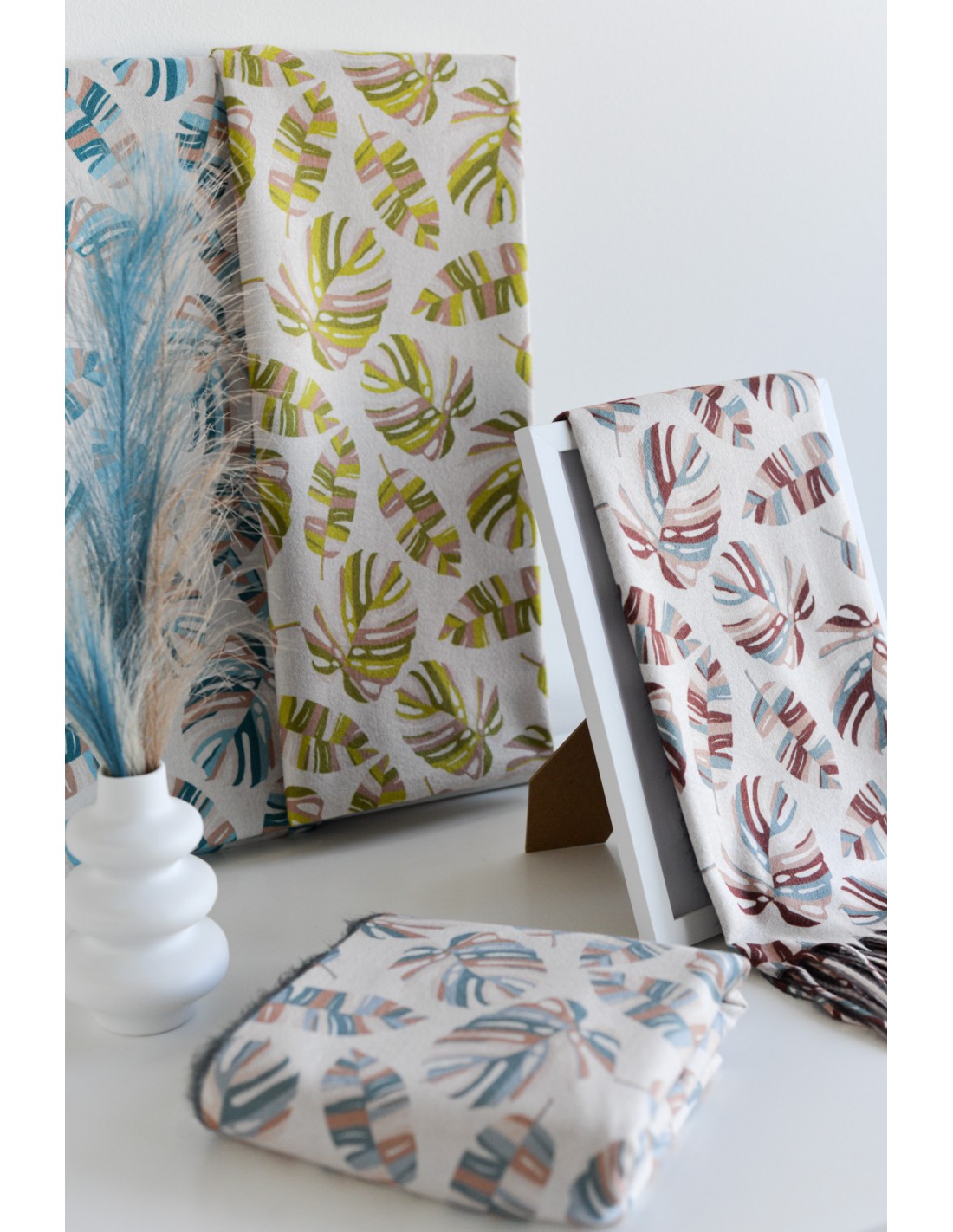 Pashmina reversible diseñada con estampado de hojas en una de sus partes y por el otro lado en color liso.
