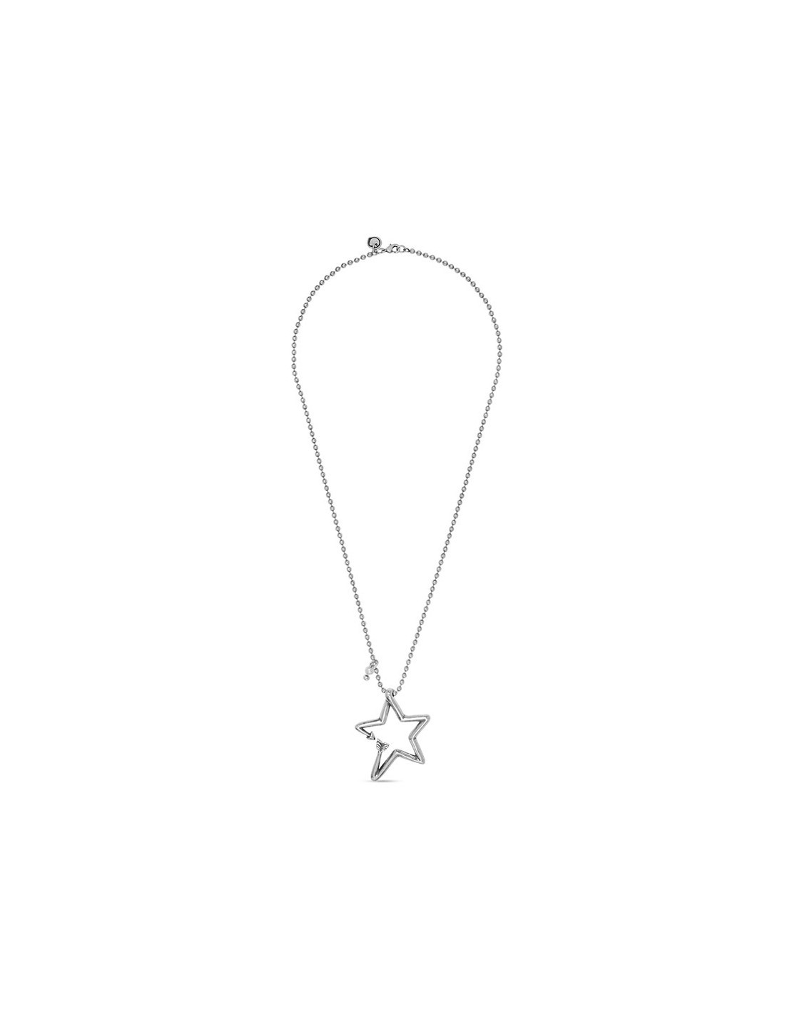 Collar corto Lucero con estrella y estela de aro con movimiento bañado en plata de la Colección Estela. Diseño de estrella decorada con cristal Murano disponible en 7 colores. La cadena es de cordoncillo y bolitas de metal bañado en plata. Mide de 44 a 50 cm. Cierre de mosquetón.