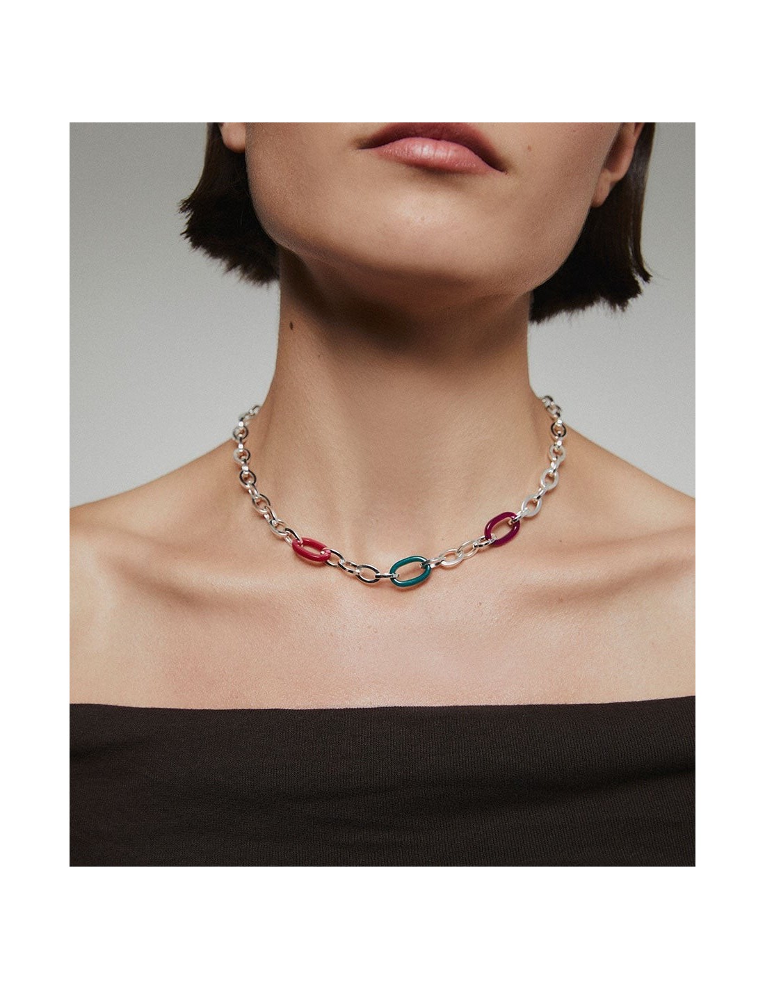 Collar Sole bañado en plata de ley 925 de la colección Bold. Con una longitud de 42 + 5 cm con cadena ajustable,piedras carey.