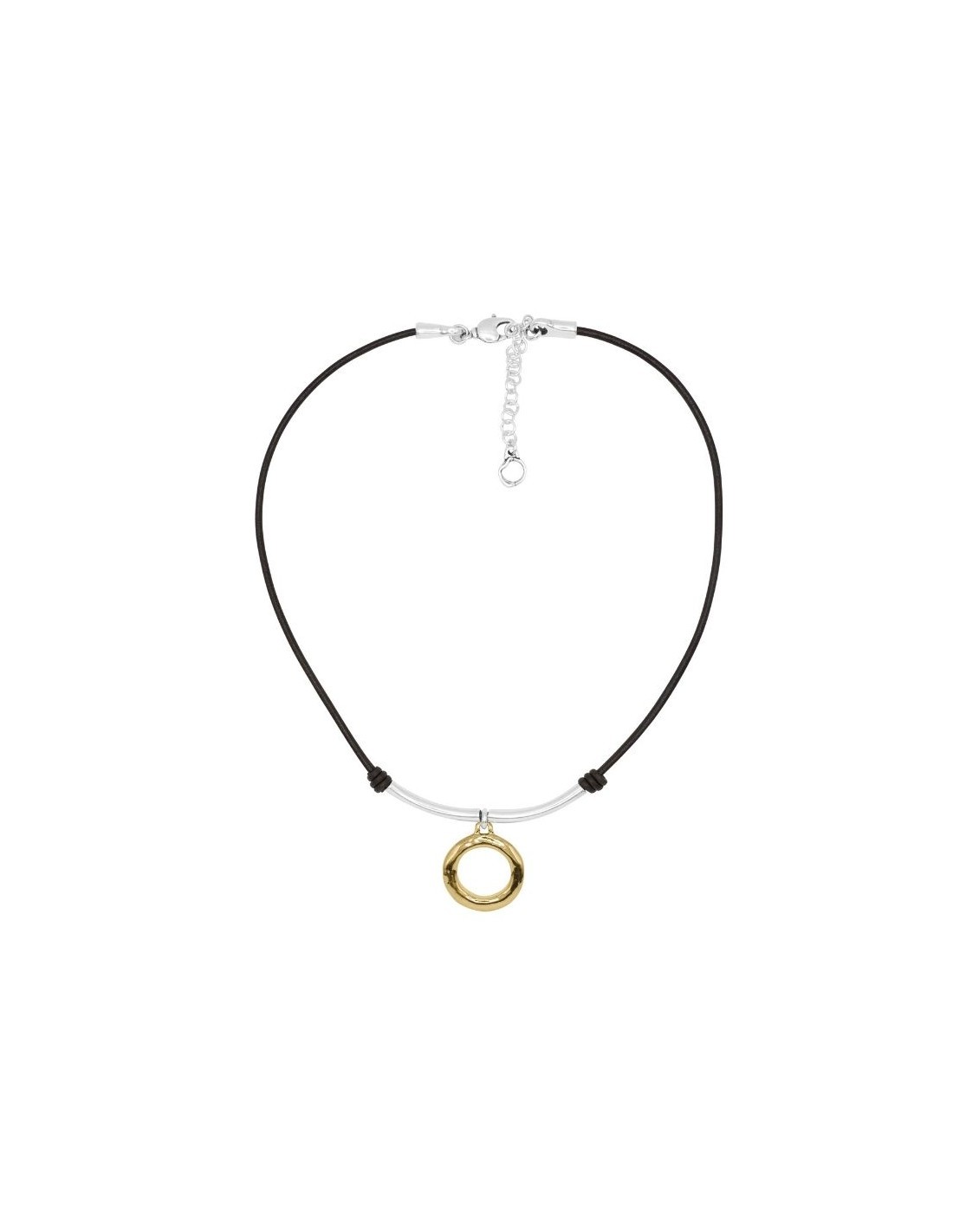 Collar Lara Gold, corto de cuero con un charm circular bañado en oro que aporta un toque cálido y sofisticado. Ajustable de 40 a 45 cm, con cierre mosquetón para un uso cómodo y seguro. Un diseño sencillo y elegante que combina fácilmente con cualquier estilo.