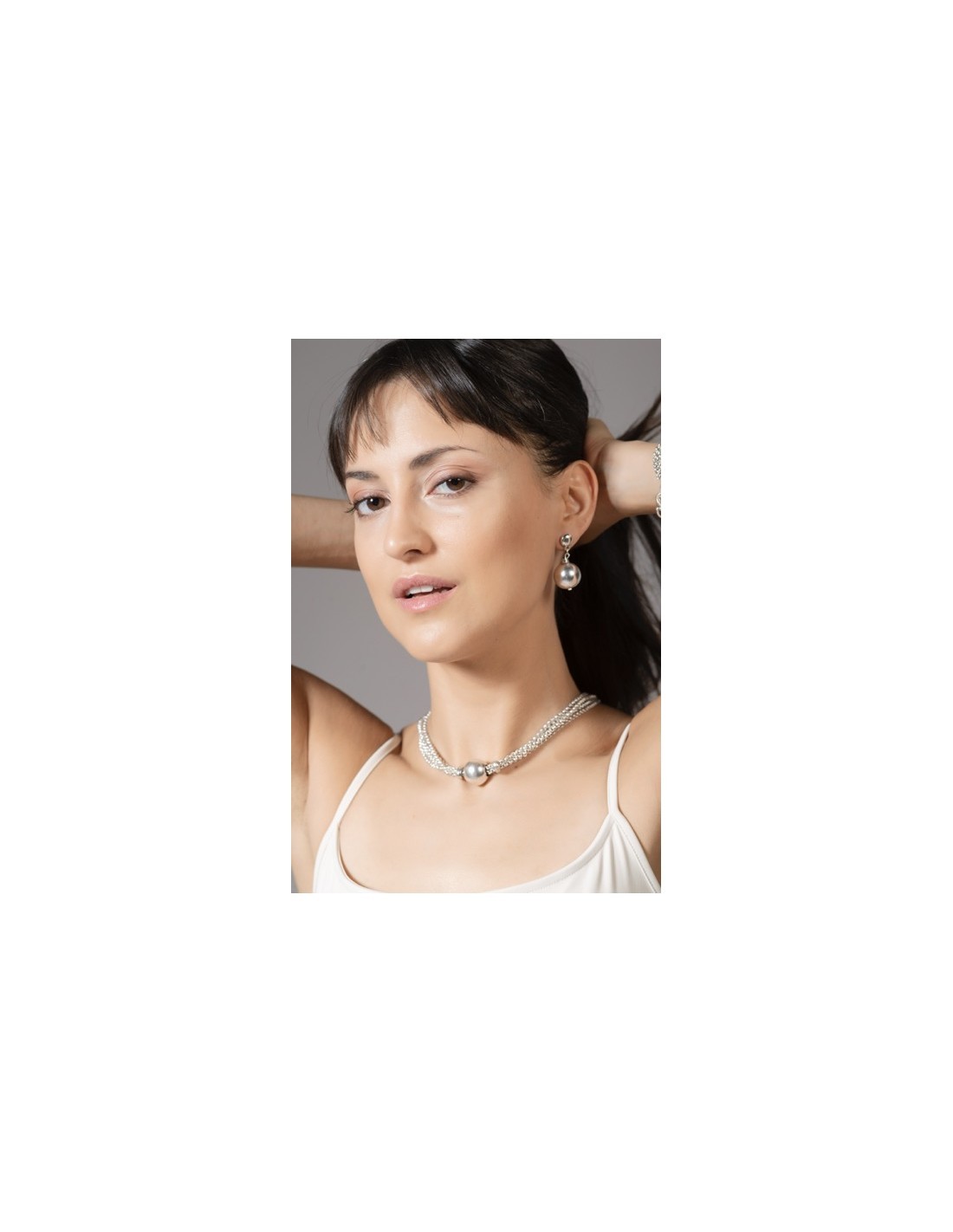 El Collar Spherik está formado por varias cadenas de eslabones pequeños bañadas en plata que pasan por una esfera central, creando un diseño único y