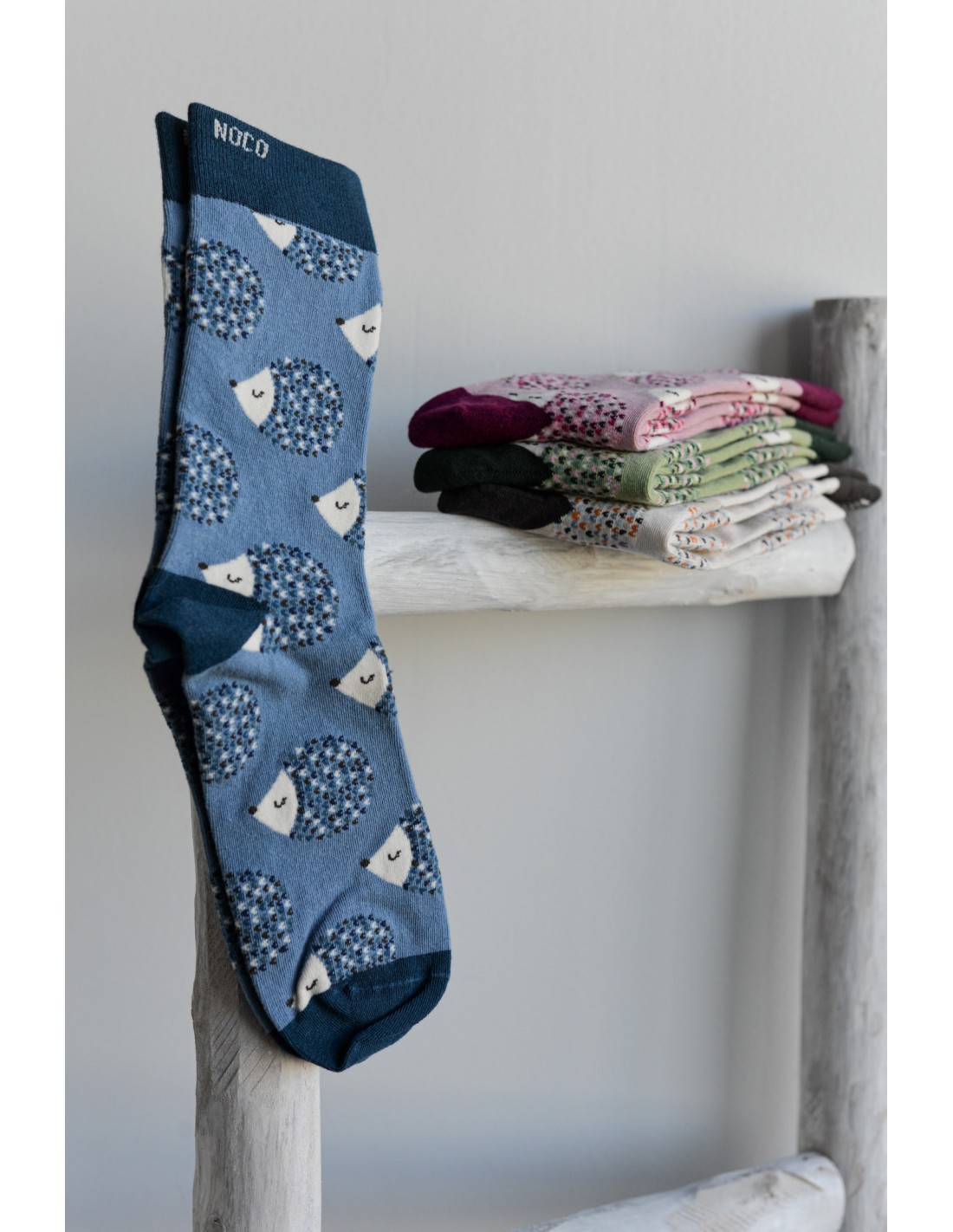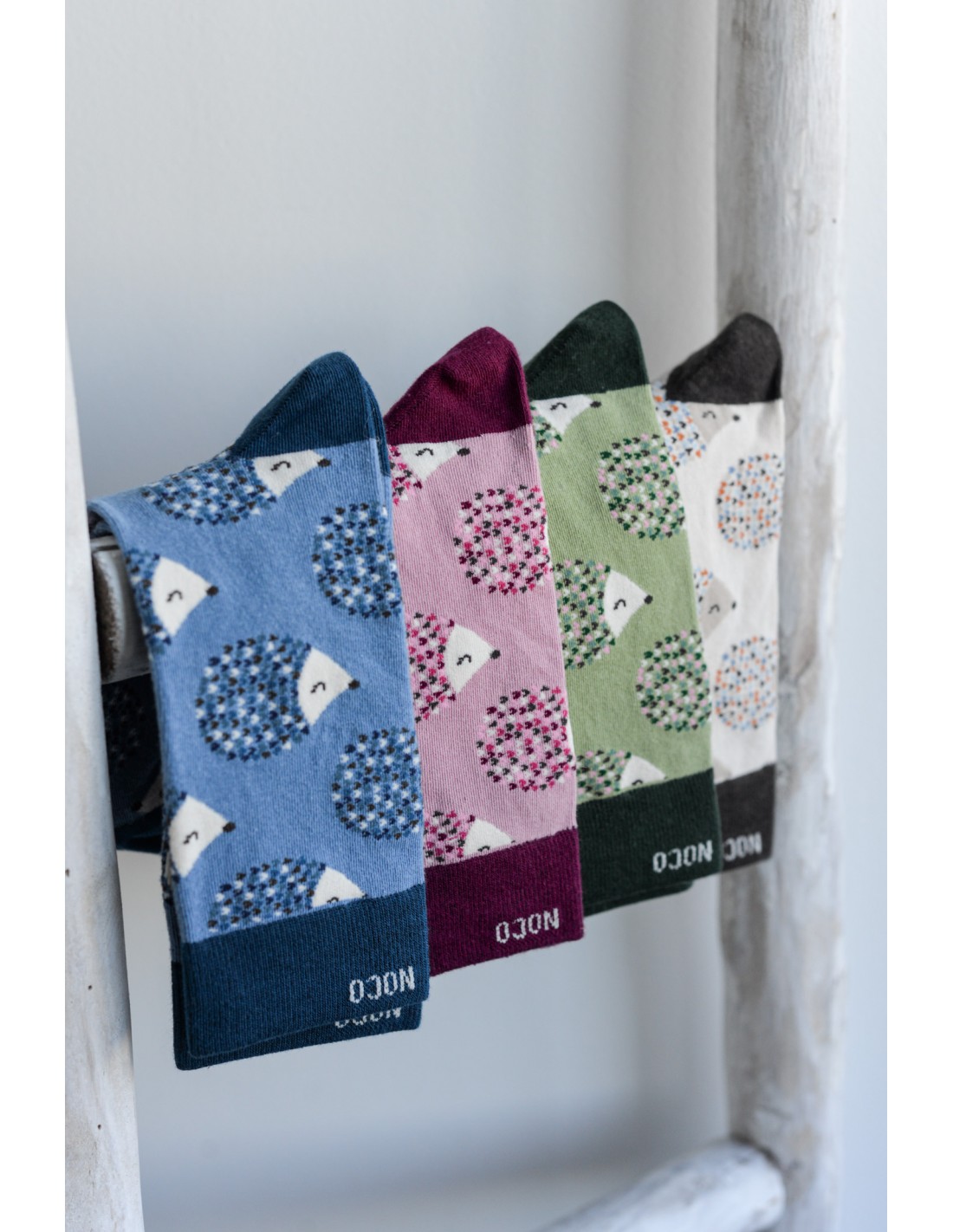 Con estampados originales y detalles en color liso en la puntera, talón y goma superior, estos calcetines unisex combinan diseño moderno con funcionalidad. Estampado de erizos.