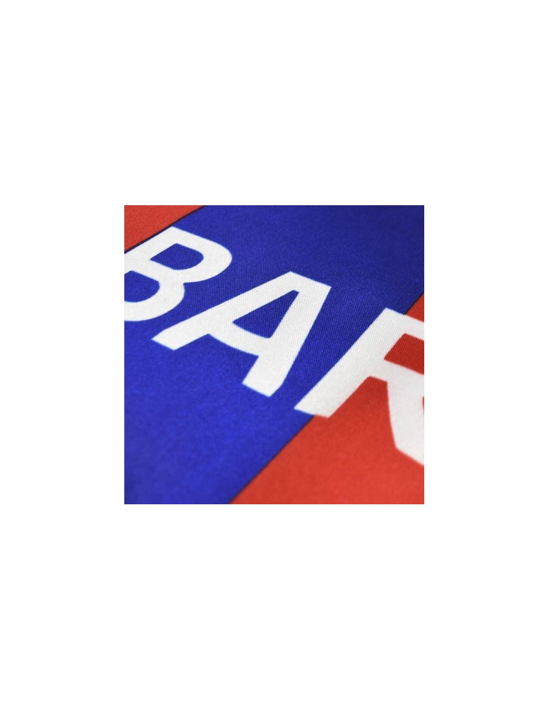Bandera del equipo del FC Barcelona. El color principal es el azul y tiene la superficie a rayas estampadas verticales.