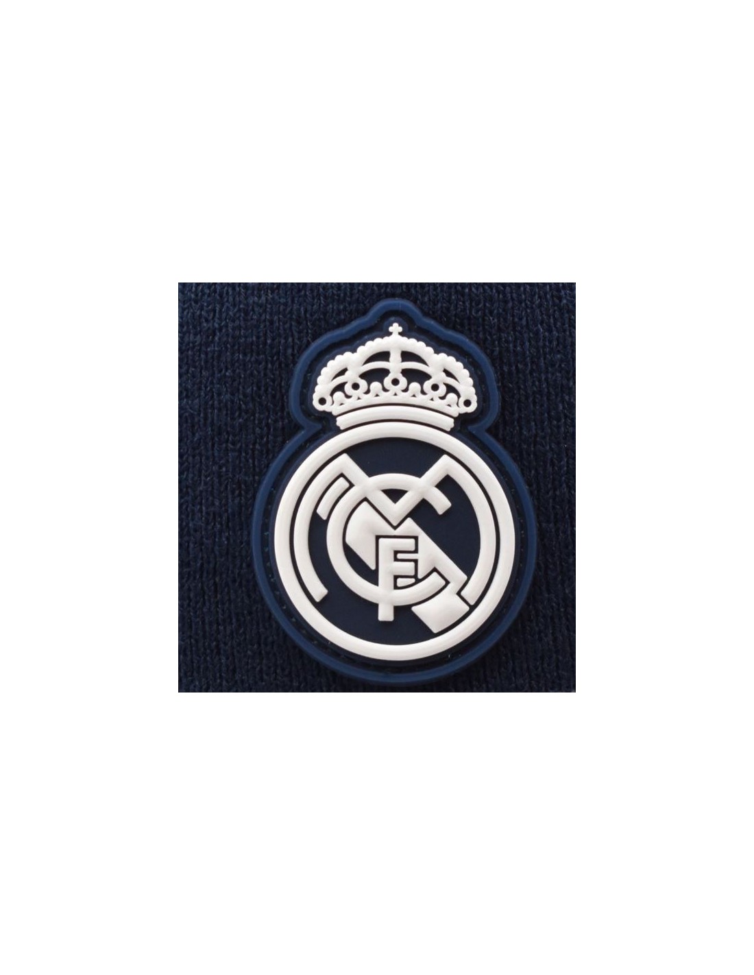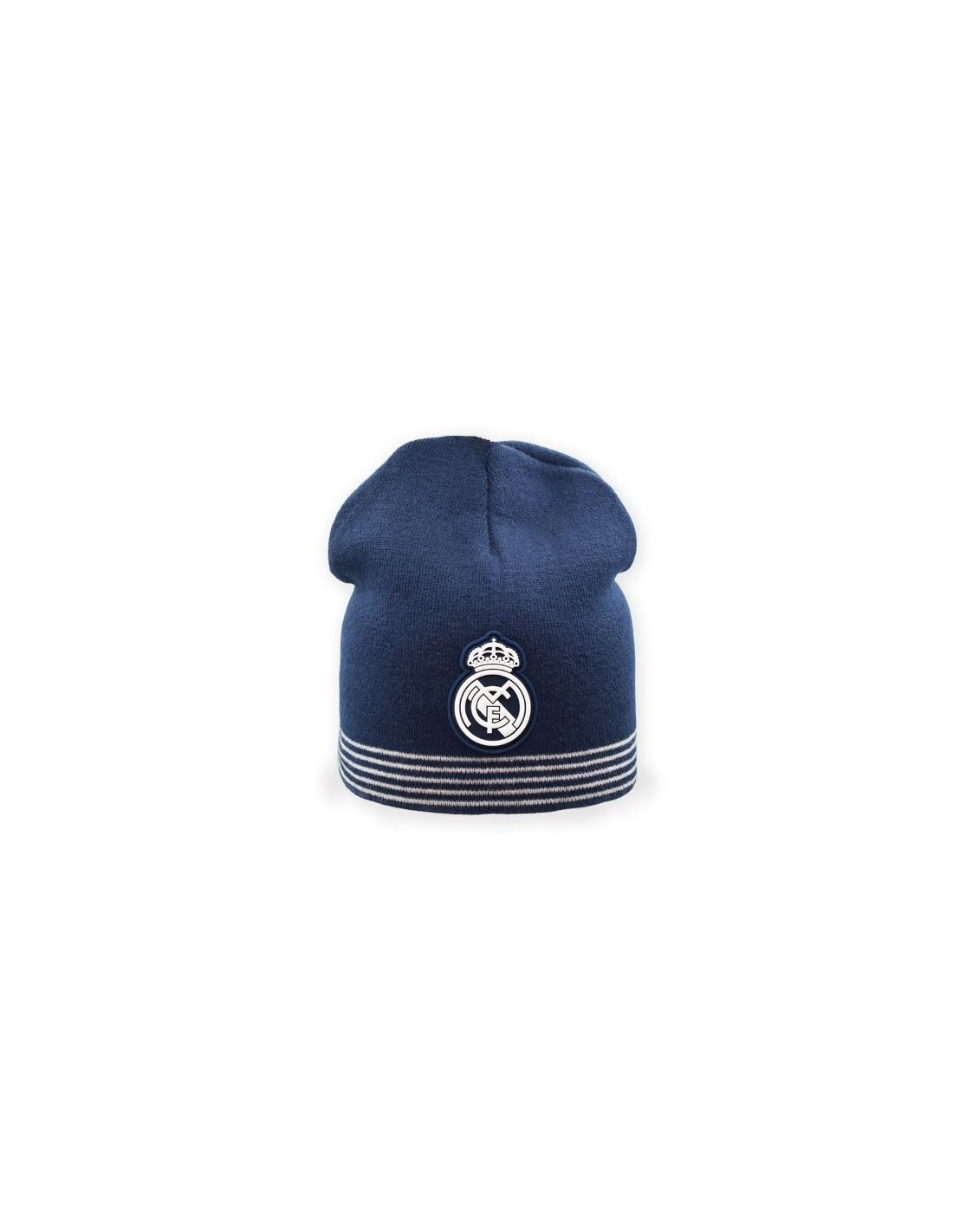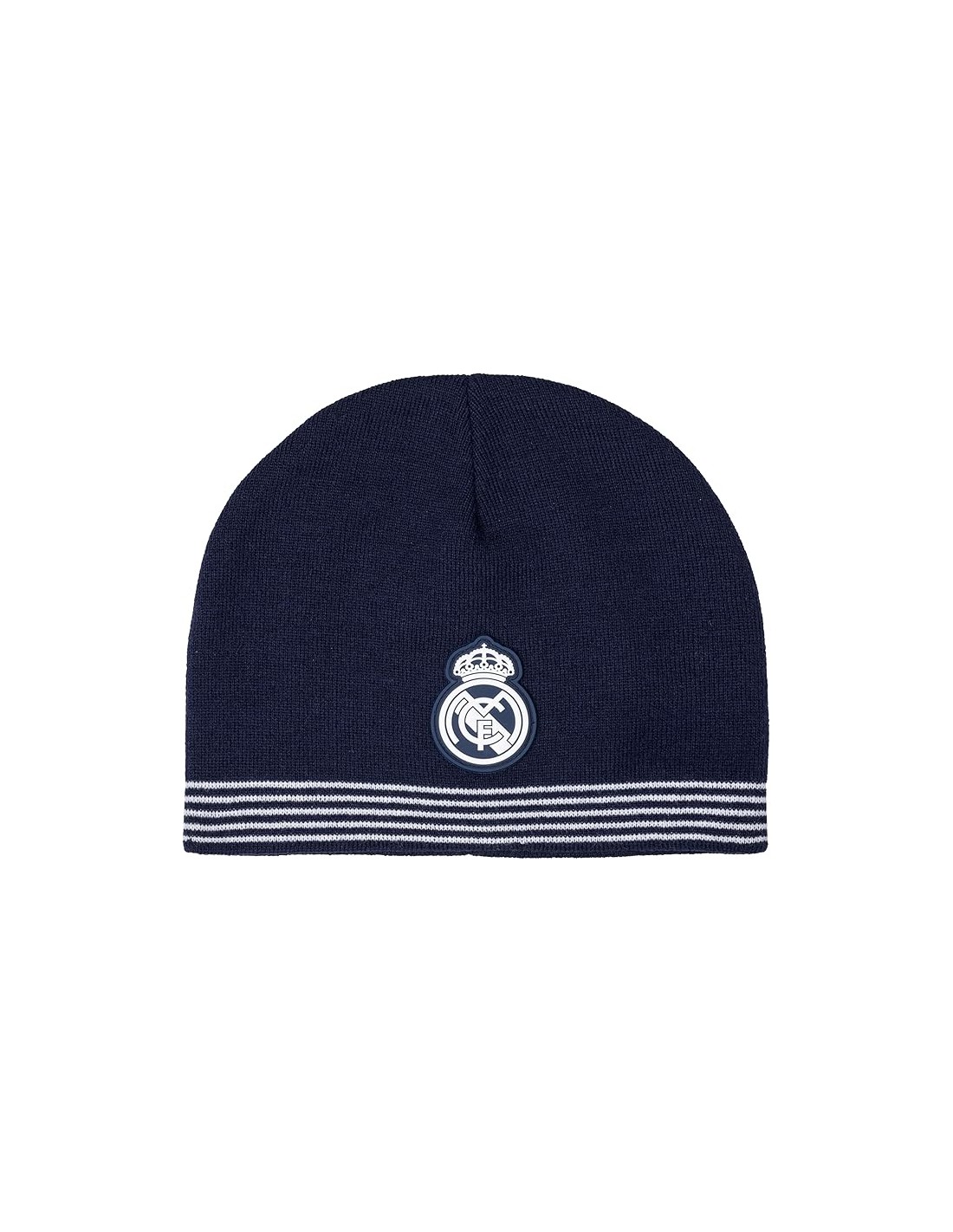 Gorro del Real Madrid en azul marino con las clásicas franjas blancas. Suave y cómodo.
