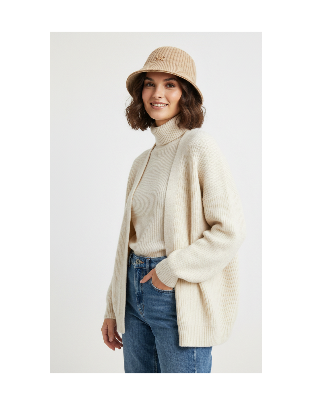 Gorro en forma de bucket diseñado en lana con tratado de apresto,para darle forma y estructura