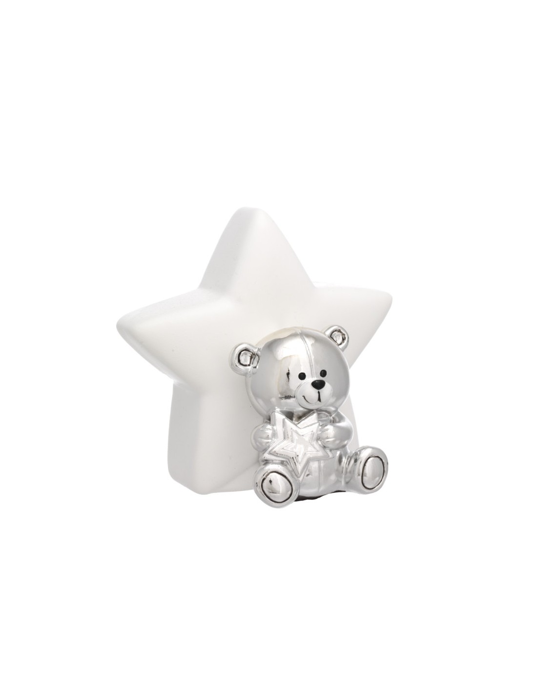 Hucha en blanco con Osito Baño Plata de Ley 925 mls.