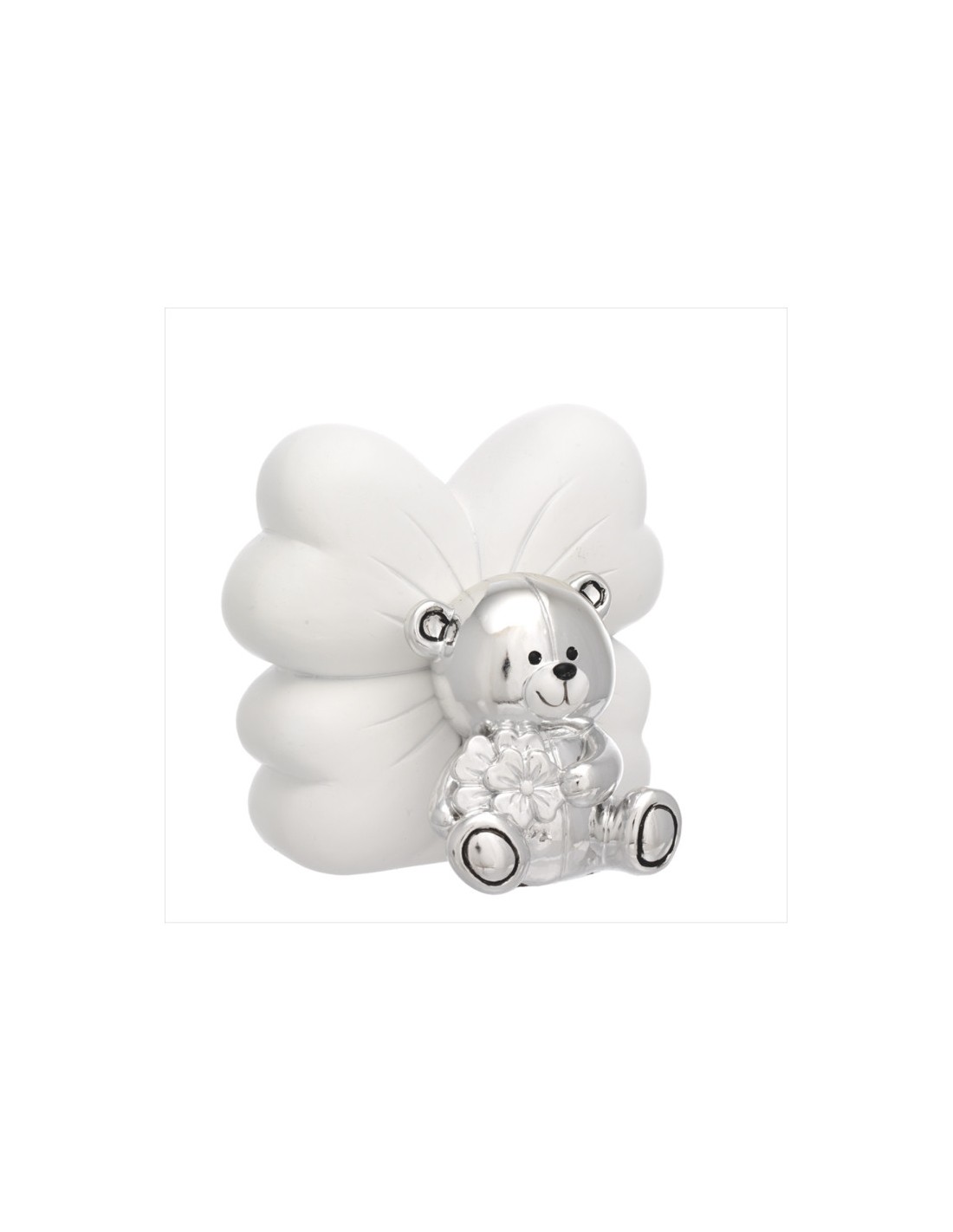 Hucha en blanco con Osito Baño Plata de Ley 925 mls.