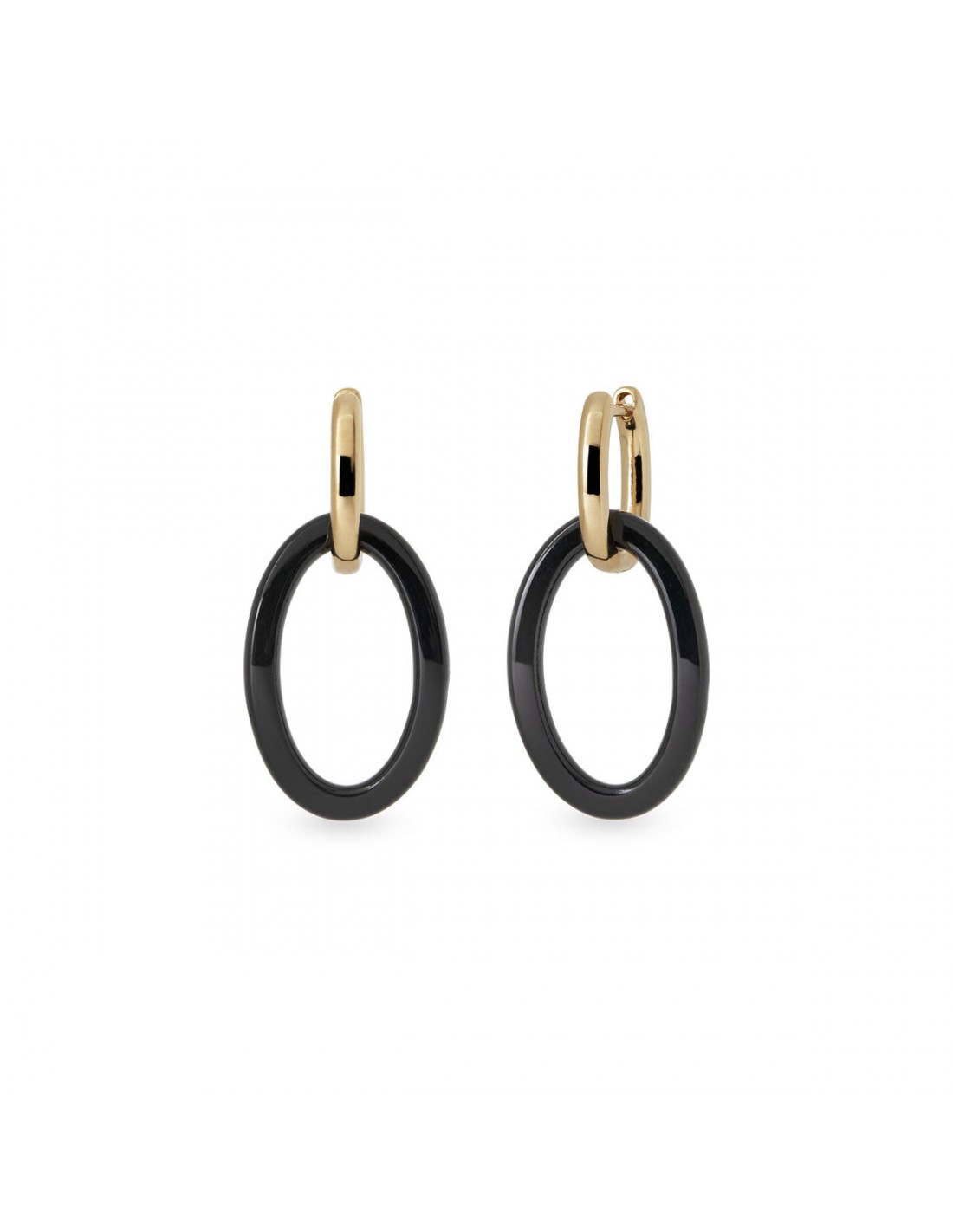 Pendientes de aros Fosc bañados con una gruesa capa de oro macizo de 18 kt, lo que garantiza una mayor durabilidad. Destacan por sus piedras de acetato y resina en tono negro, que aportan un aire de sofisticación en clave neutra. Tienen una longitud de 33