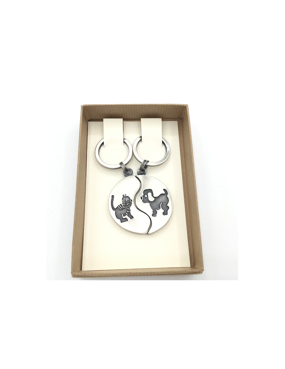 LLAVERO DOBLE CIRCULO GATO Y PERRO