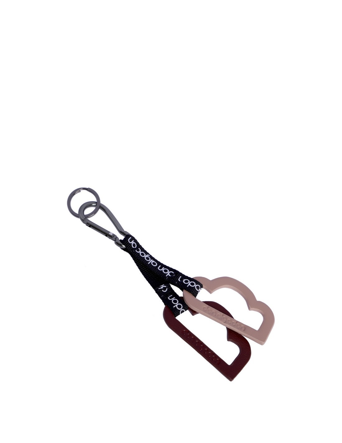 Llavero para mujer Don Algodon Etel multicolor con dos cintas de otomán con logo impreso en blanco sobre cinta negra, de las cuales cuelgan dos nubes de Don