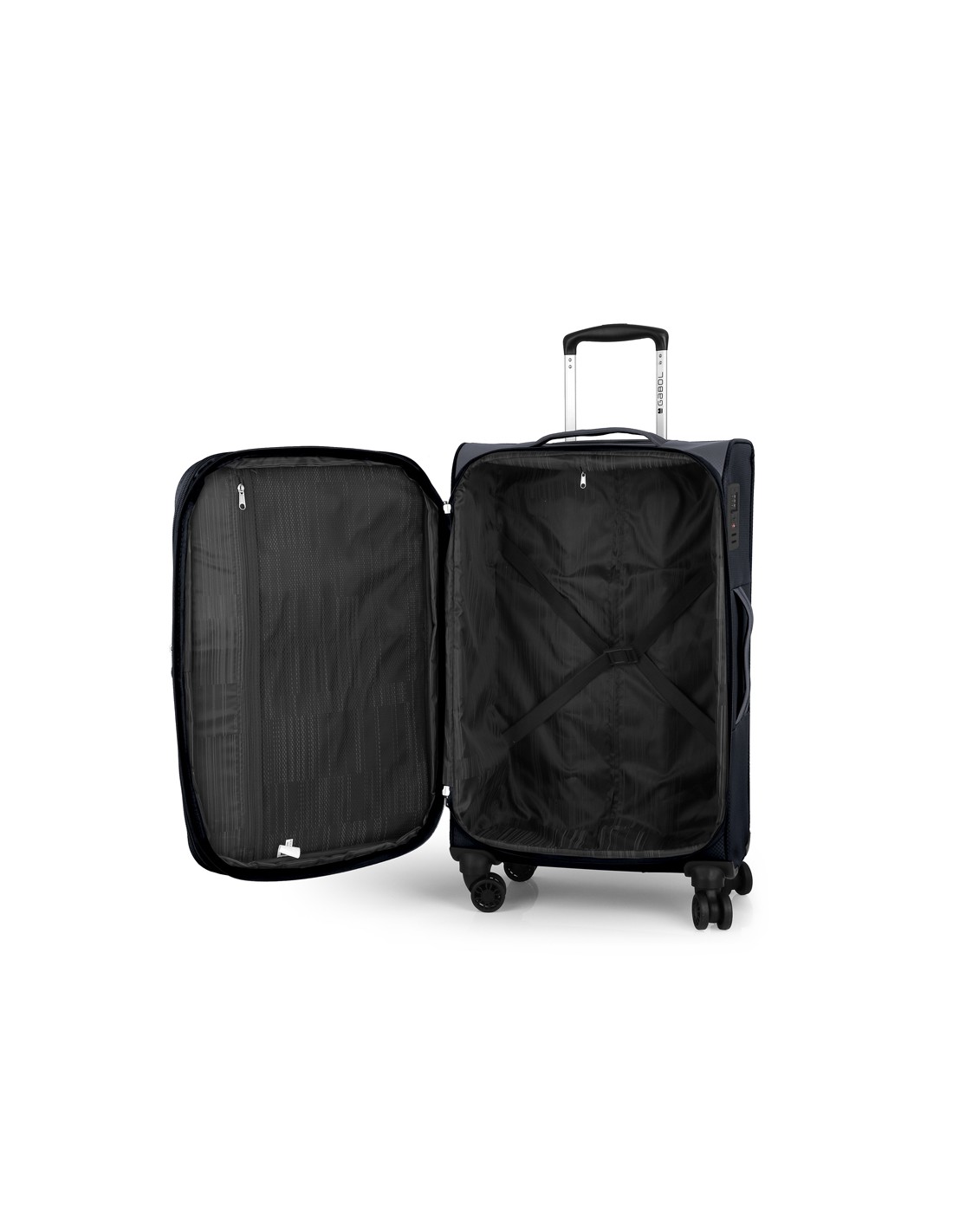 Forro interior de alta calidad estampado al color exterior de la maleta. Dispone de cremallera interior en un lateral y cintas con tensor para la sujeción de su equipaje.