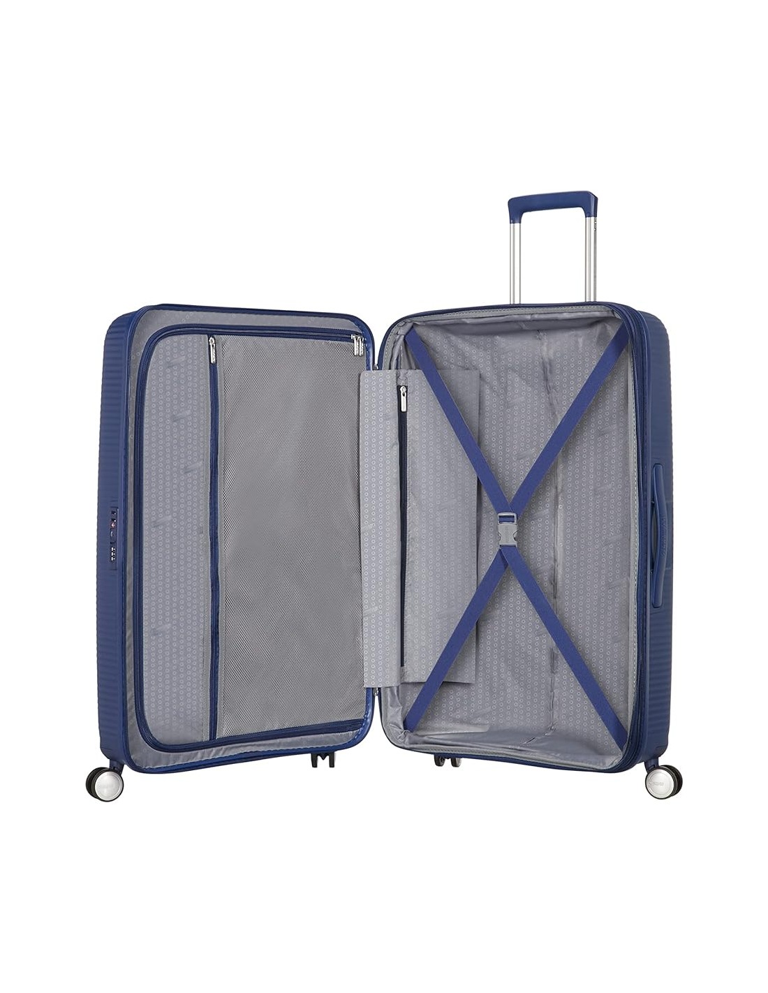 Maleta. Con más de 100 litros de capacidad y solo 4,2 kg de peso, esta gran maleta de nuestra colección Soundbox con diseño de surcos es segura, resistente y ligera. El divertido diseño circular con superficies mates y brillantes contrastadas hará volver las miradas en todos los sitios a los que viajes. Expansibilidad, cerradura TSA fija, cuatro ruedas dobles de rodaje suave y cómoda organización interior son cualidades que ayudarán a convertir esta maleta en la elección más valorada
